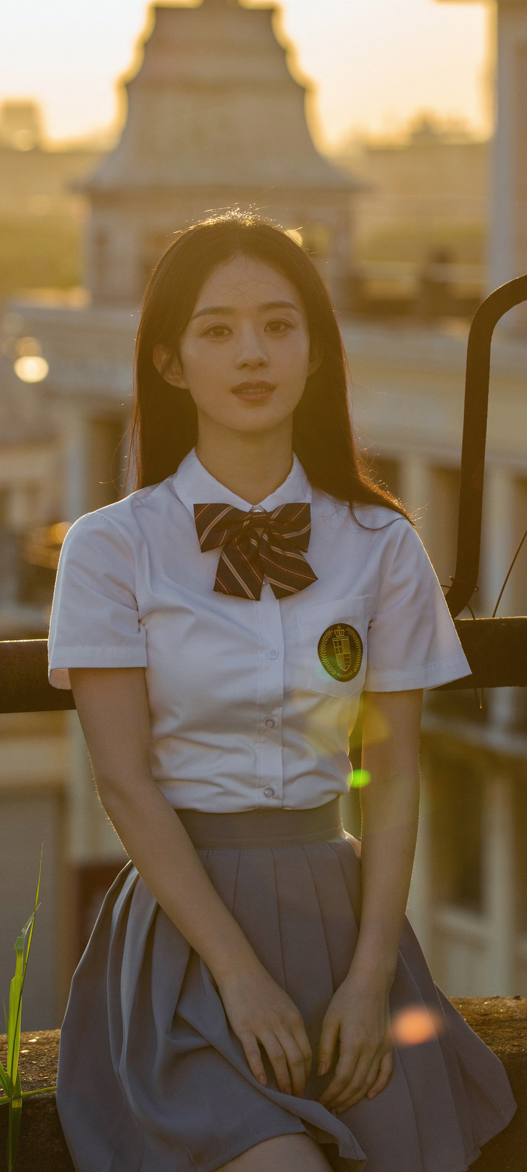 赵丽颖白色衬衫配百褶裙美女高清免费手机壁纸下载
