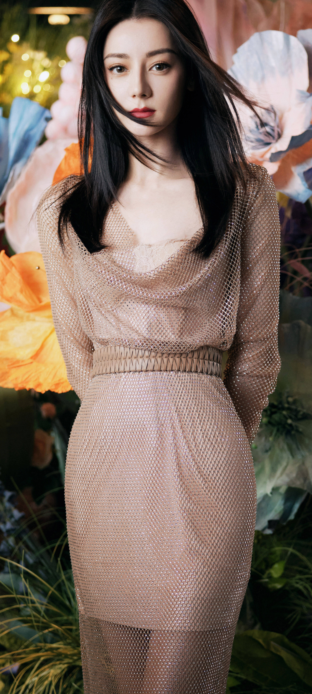 宋昕冉侧颜美女配红花头发手机壁纸免费下载