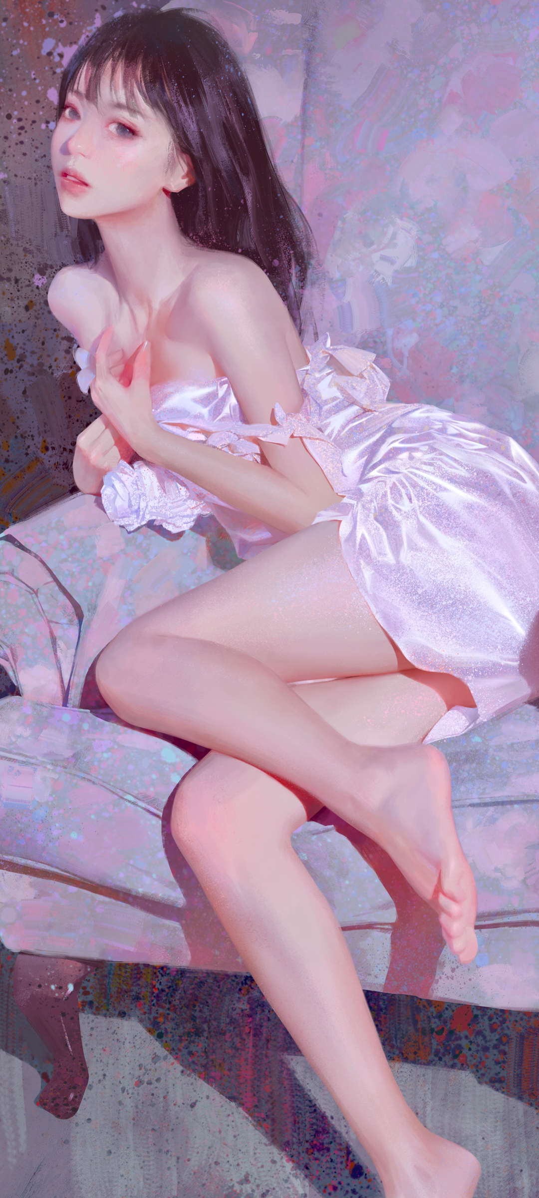 厚涂唯美长发美女穿裙美腿沙发手机动漫壁纸免费下载