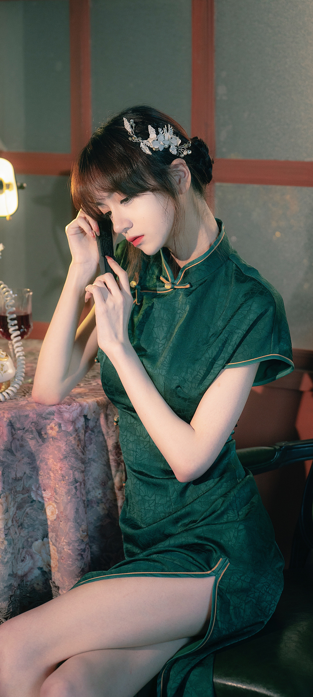 蓝色裙子 侧脸美女 鞠婧祎手机壁纸