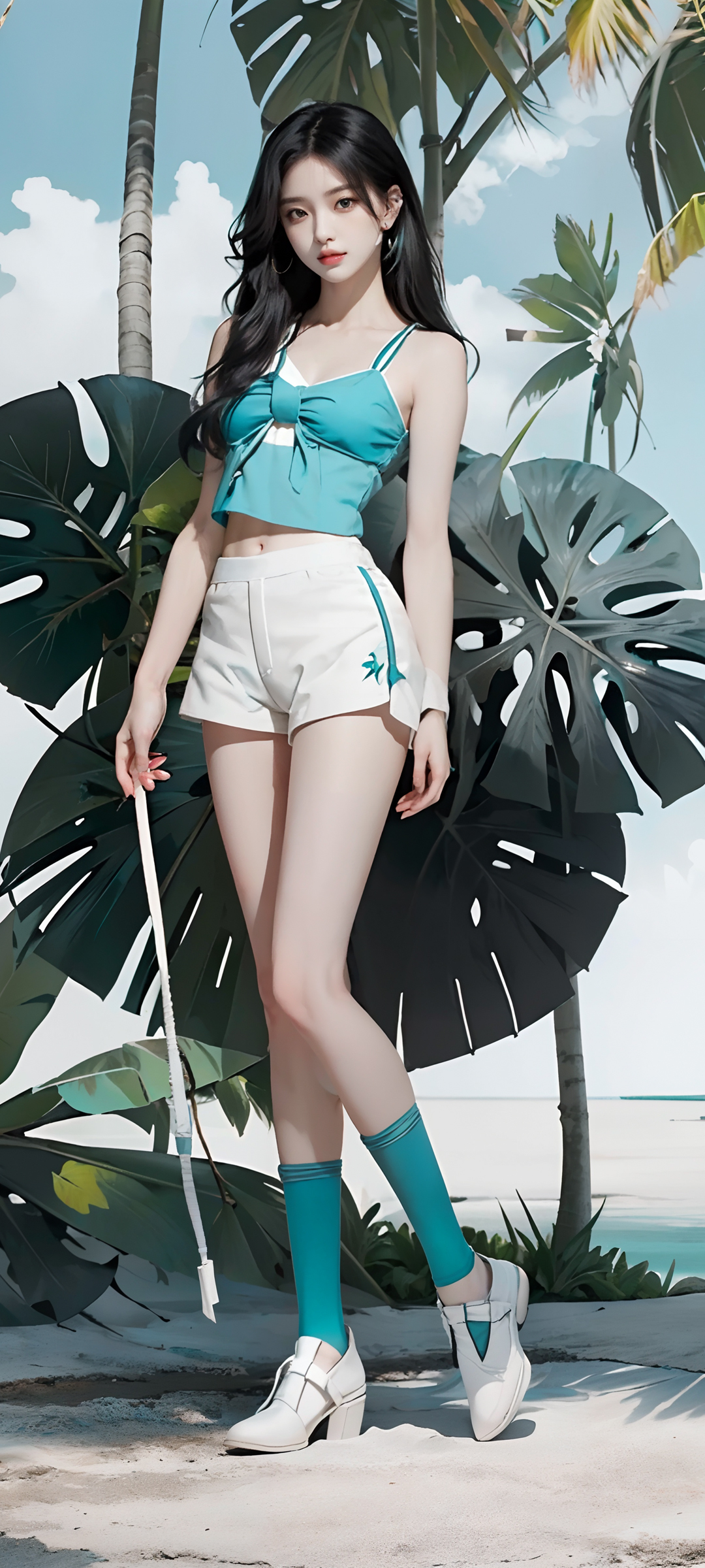 夏天海边AI动漫美女美腿手机壁纸免费下载