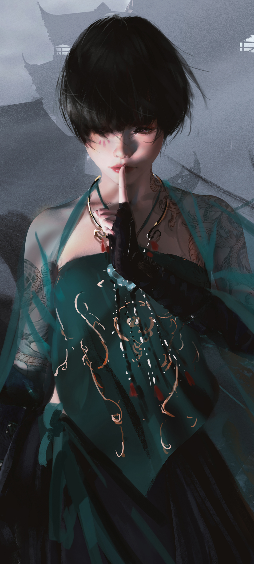 短发 美女 纹身 厚涂画 鬼刀 全屏 高清手机壁纸