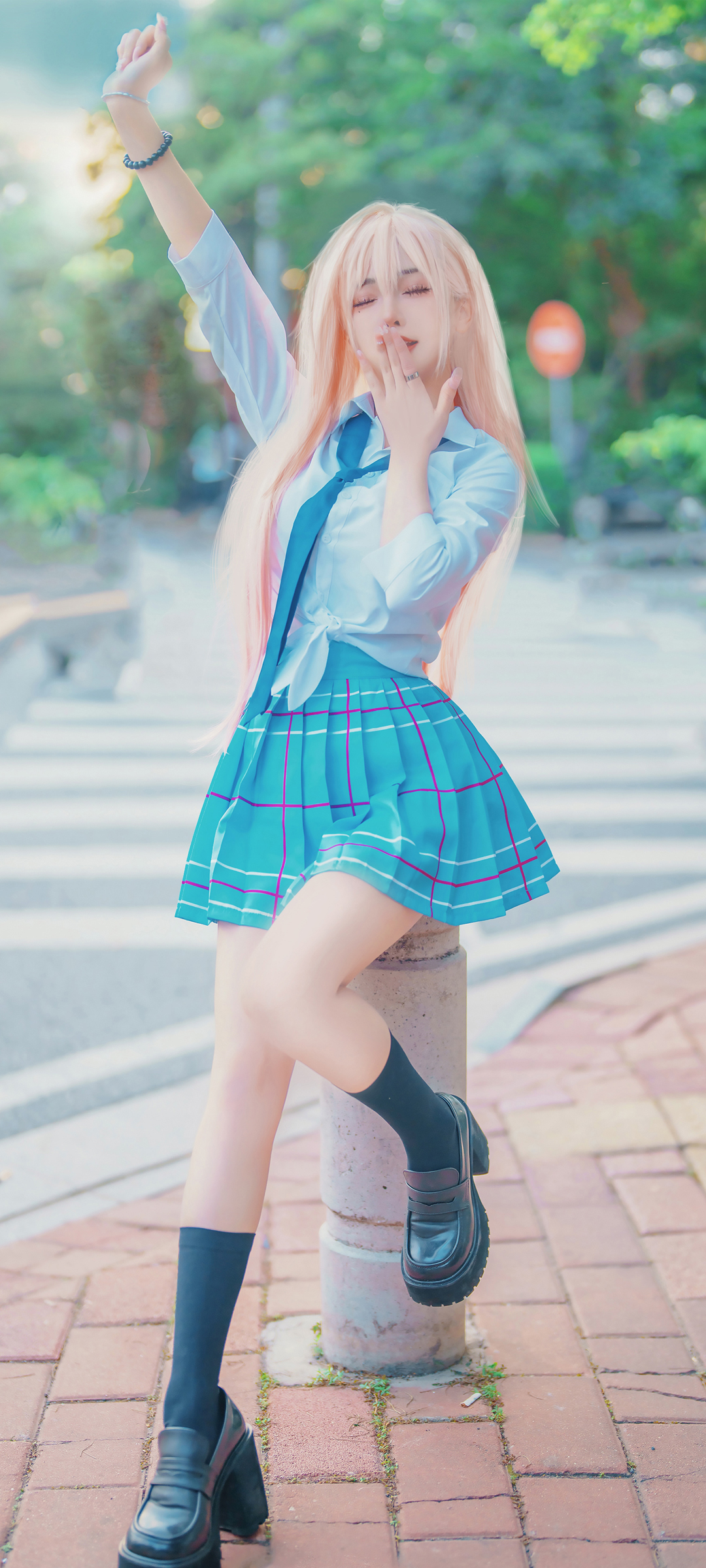 街头金发夏装美女高清手机壁纸免费下载