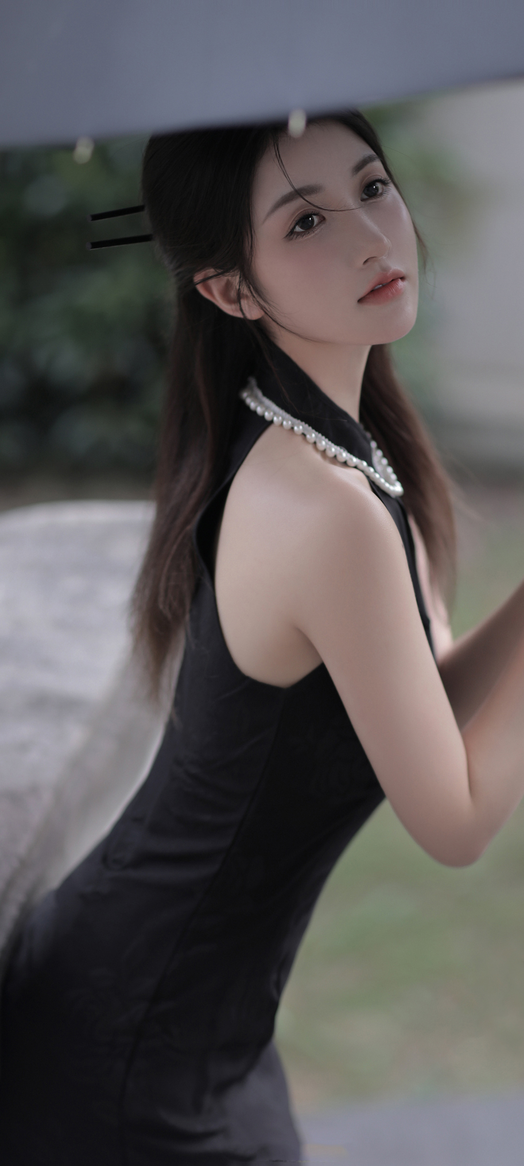 长发美女黑色裙子高清全屏手机壁纸免费下载