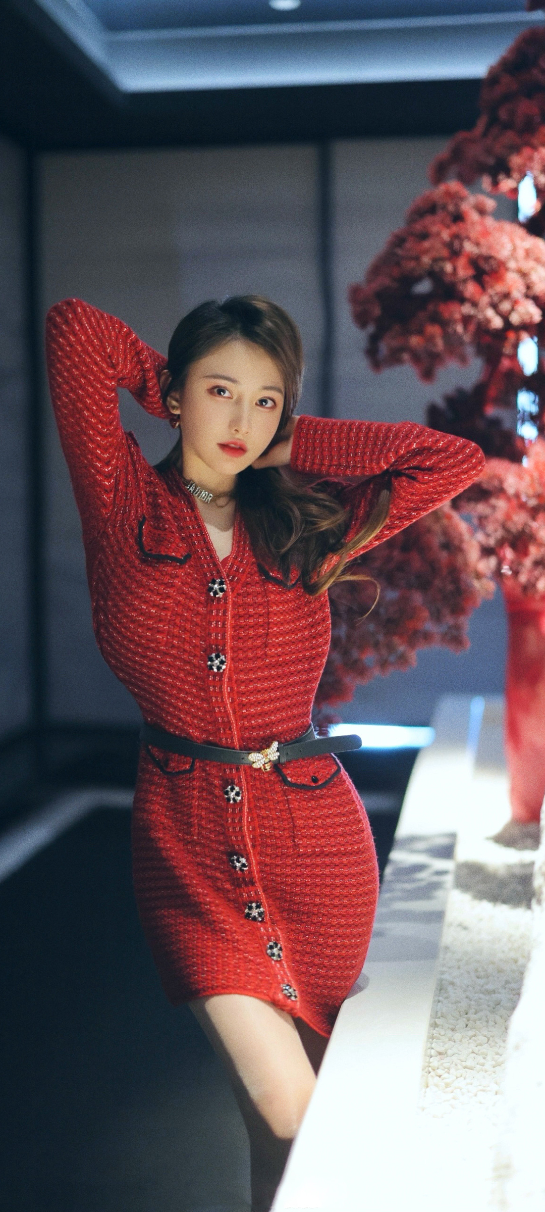 刘奕宁红色连衣裙美女高清免费手机壁纸下载