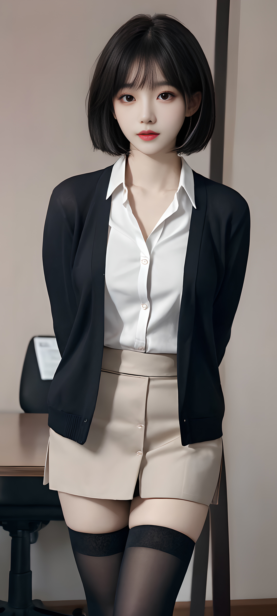 职业装短发美女AI高清动漫手机壁纸免费下载