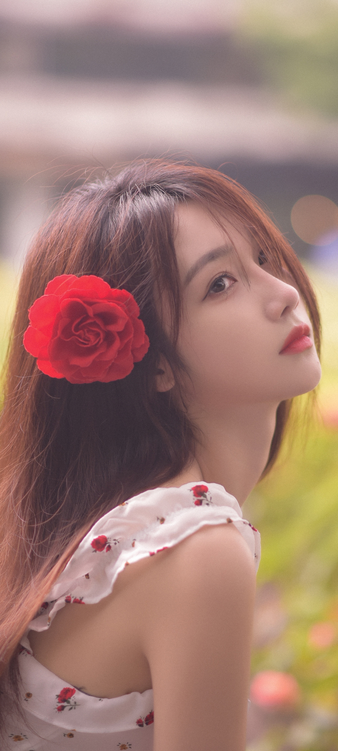 头发 红花 侧颜美女 宋昕冉手机壁纸