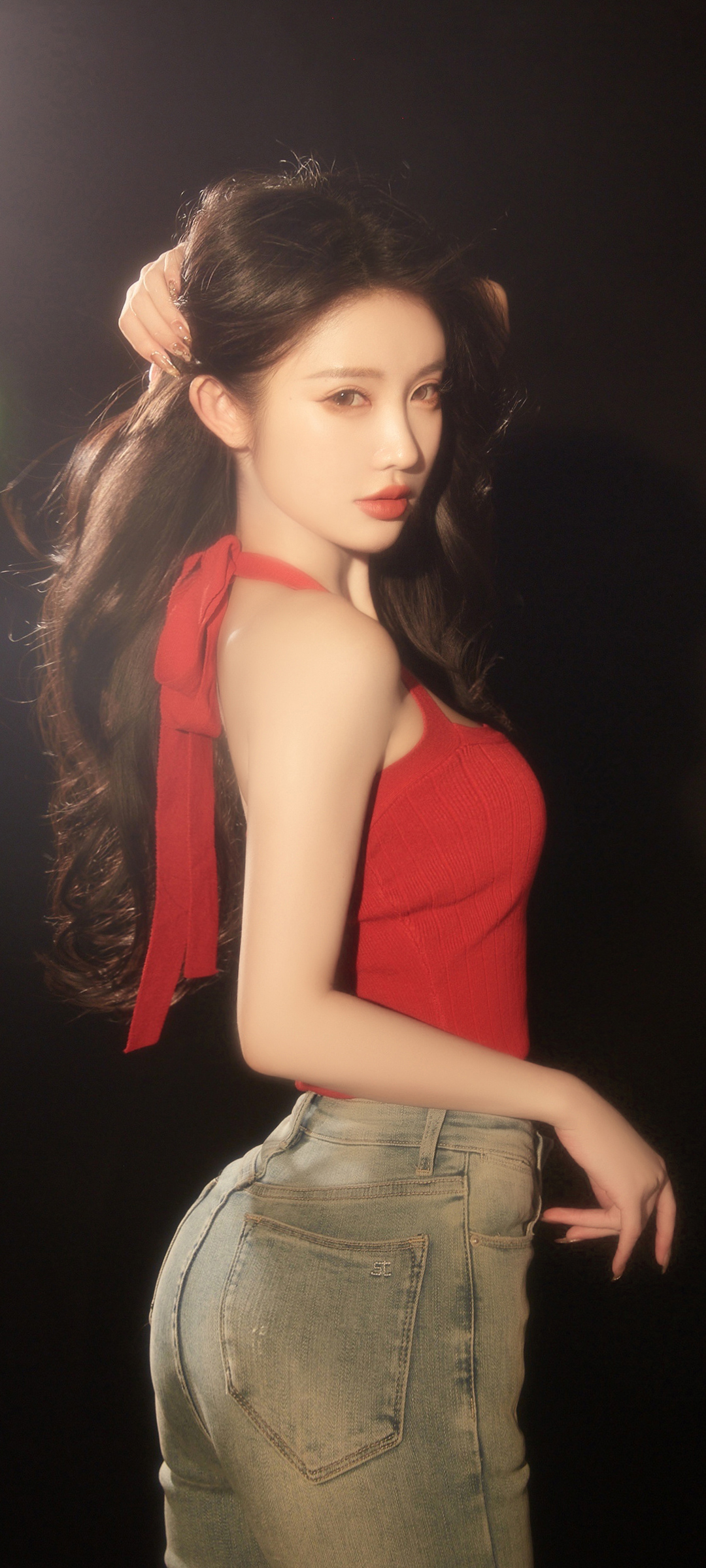 红色裙子长发气质美女高圆圆全屏高清手机壁纸