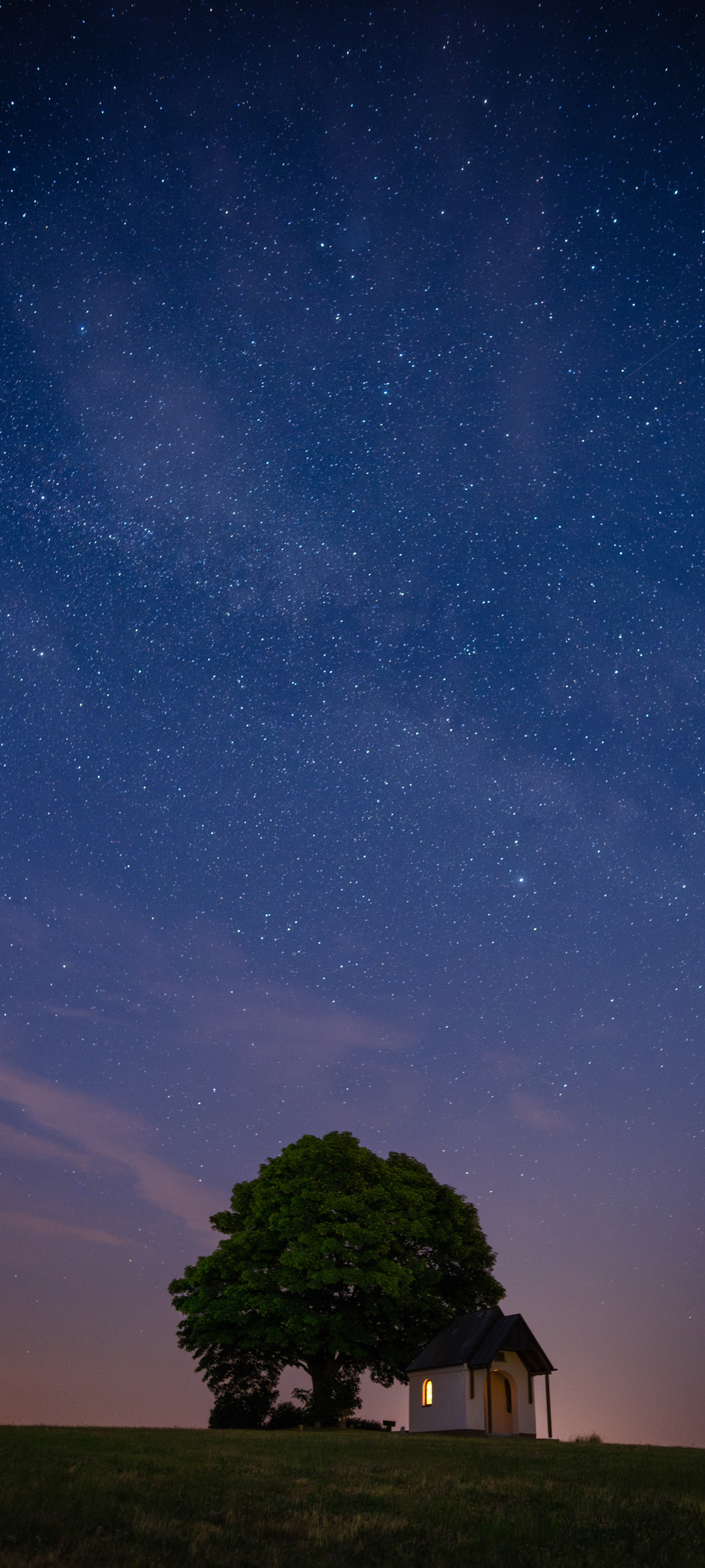 晚上星空下树与小房子的绝美风景手机壁纸免费下载