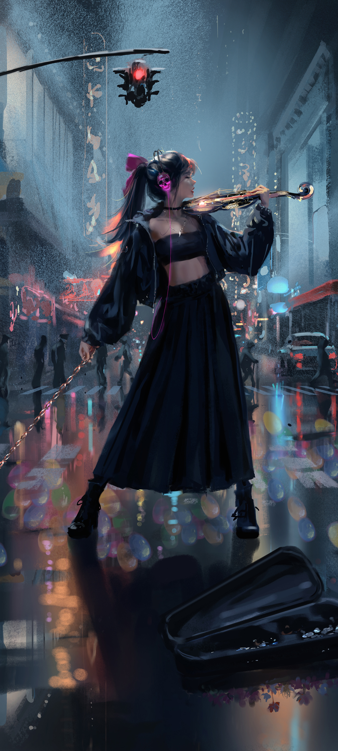 鬼刀女孩拉小提琴高清音乐主题手机壁纸免费下载