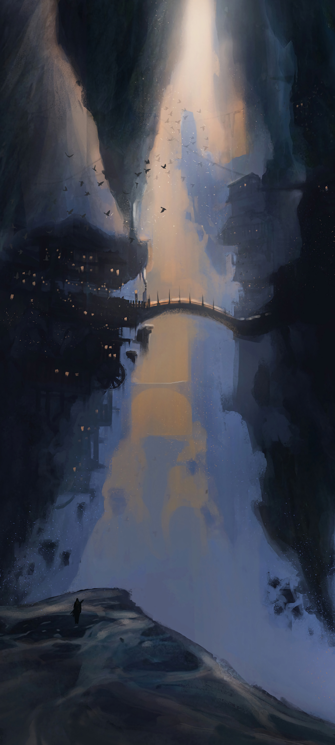 深色系风景 桥 岩石 绘画风景手机壁纸