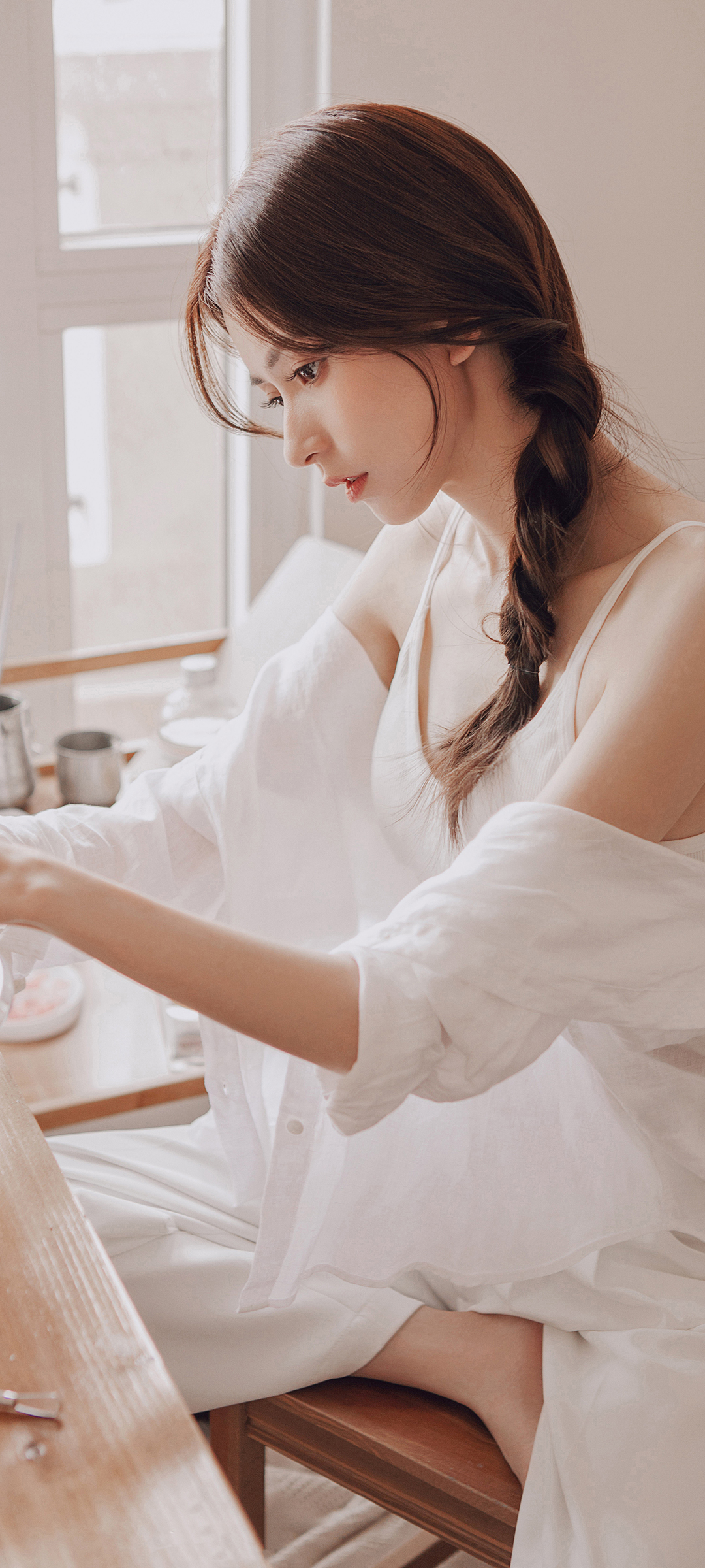 鹿醒穿搭风,白色衬衫配短裙养眼美腿美女手机壁纸免费下载