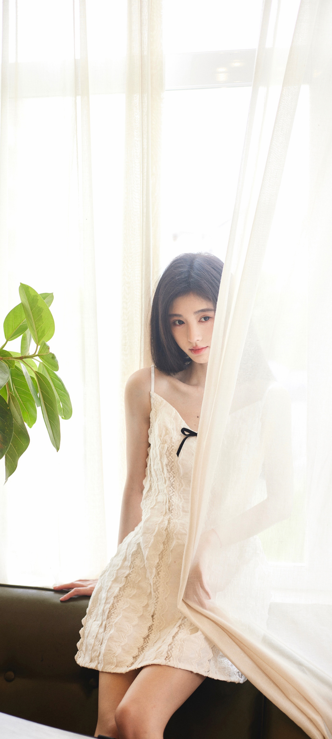 陈大莹白色内衣裤袜美女模特美腿免费手机壁纸下载
