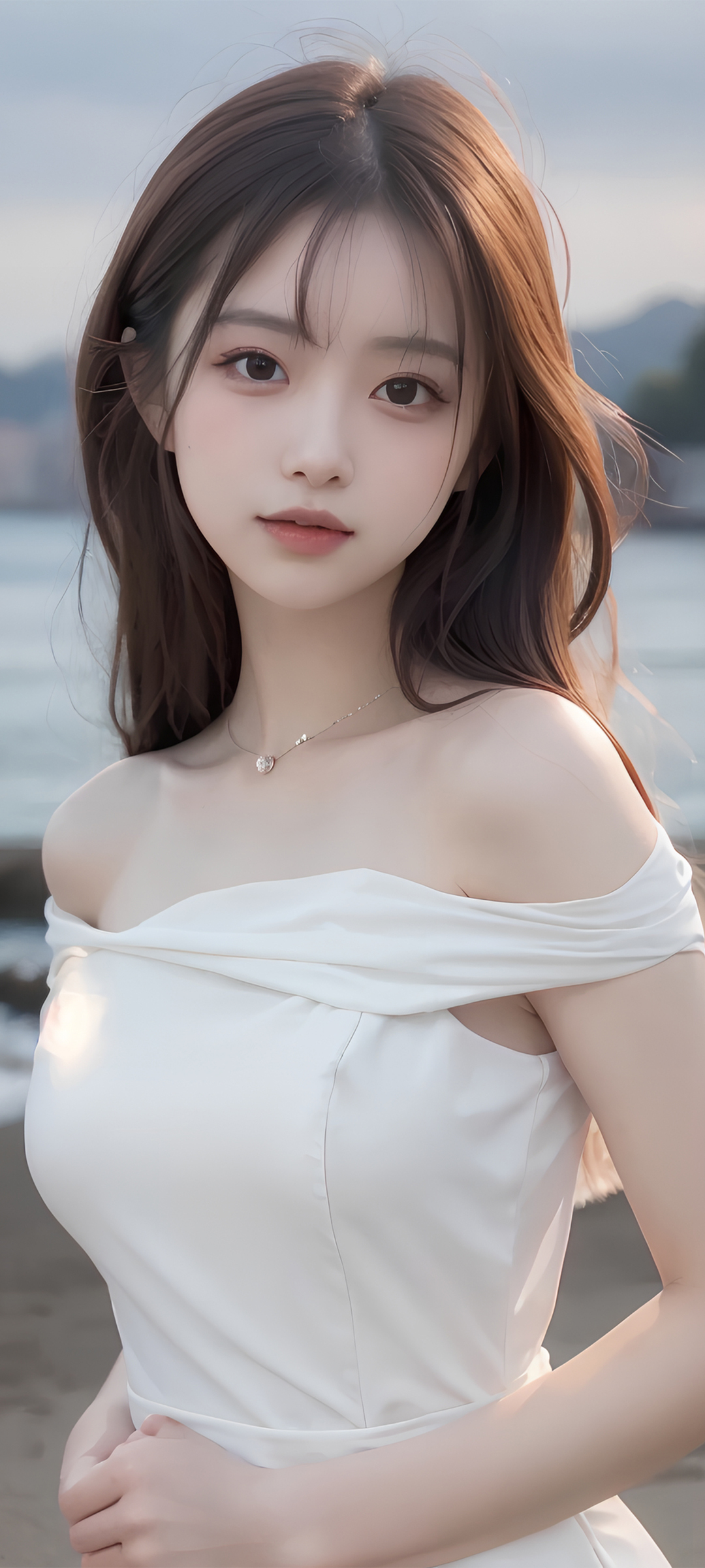 AI绘画海边白色裙子动漫美女手机壁纸免费下载