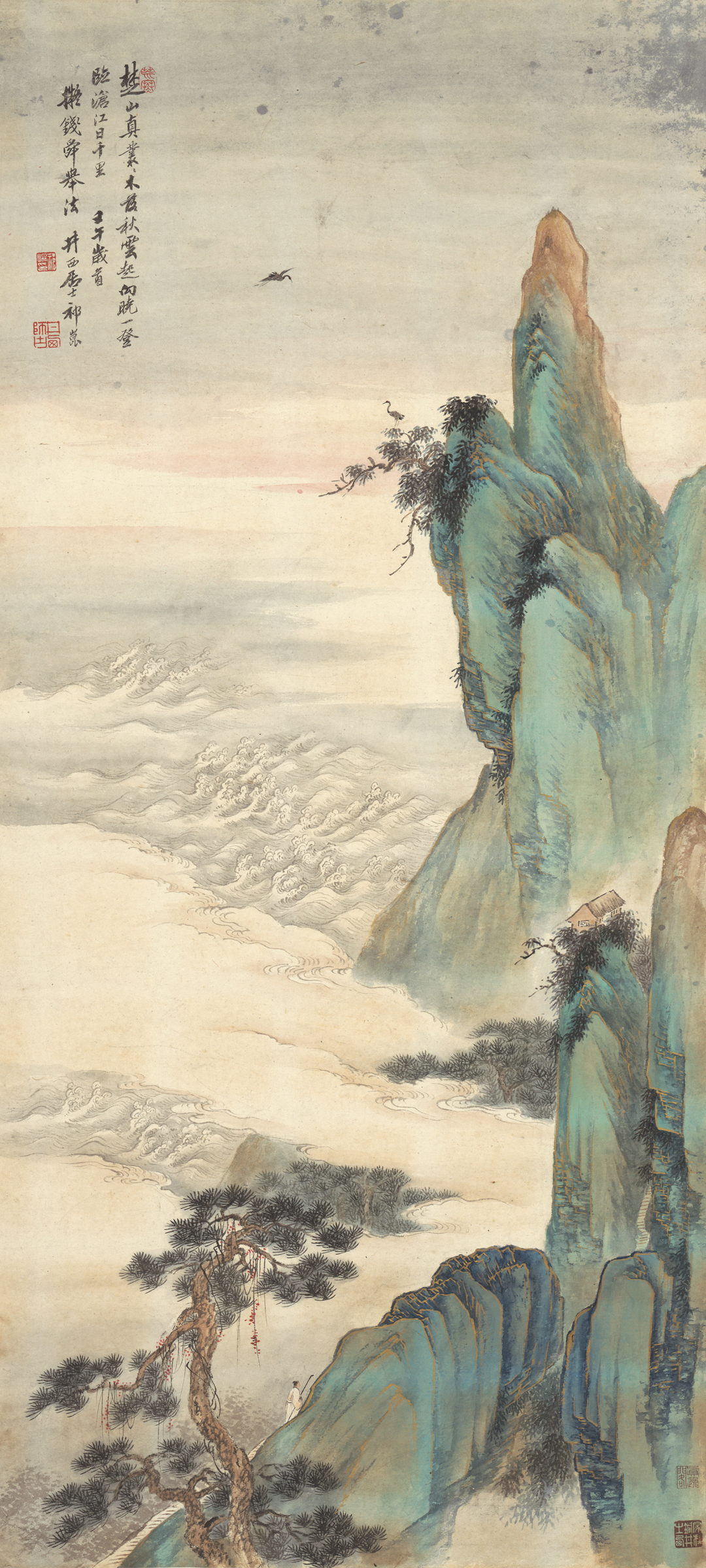 古典艺术高山云石树风景免费手机壁纸下载