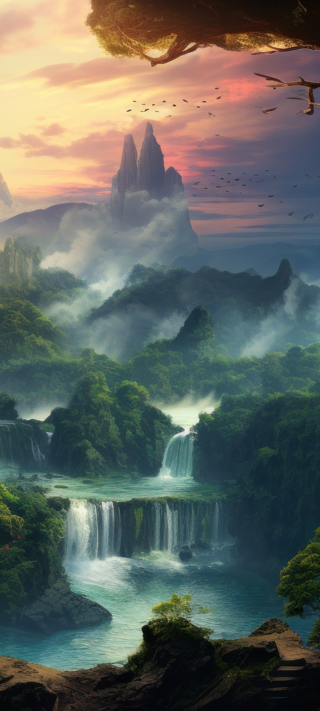 高山 瀑布 梦幻风景手机壁纸