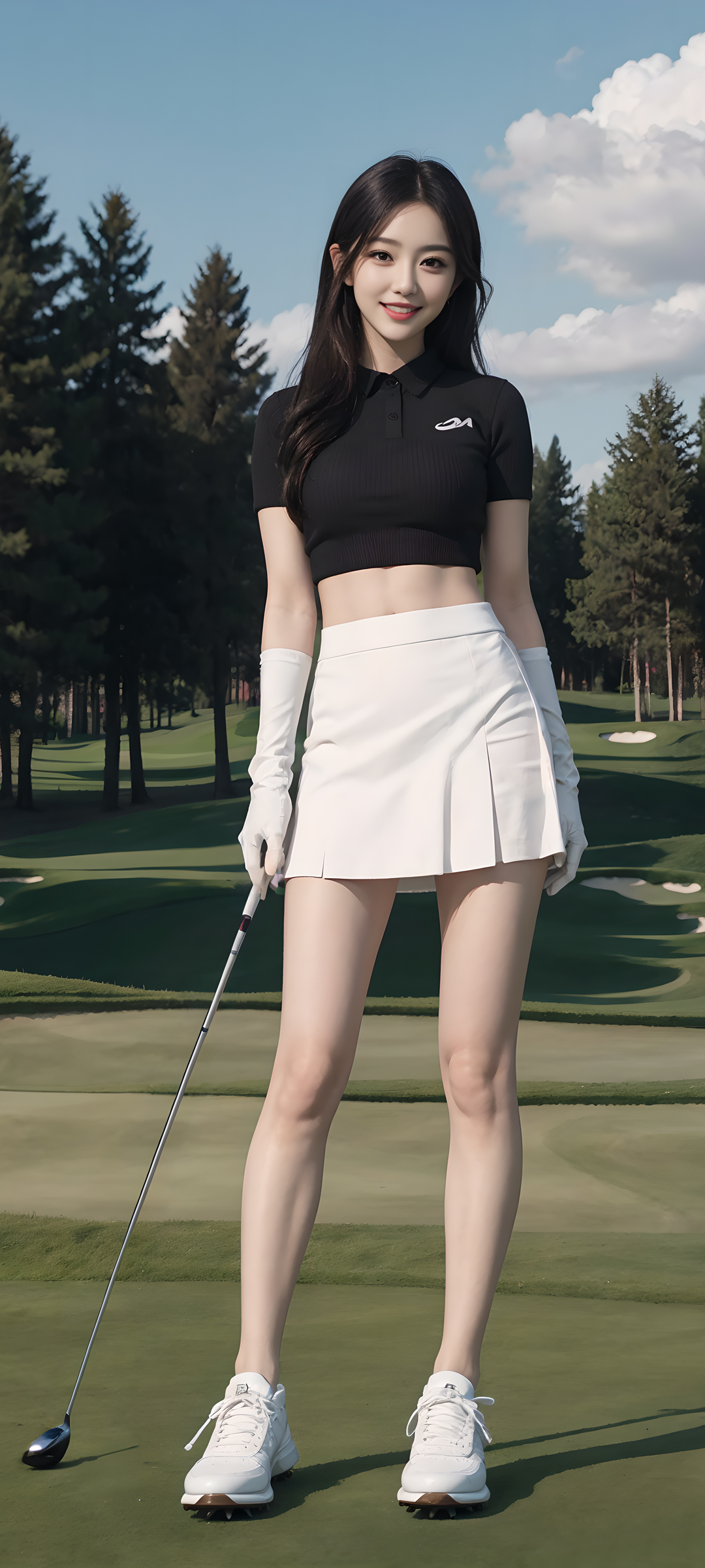 AI绘画高尔夫球场美女动漫手机壁纸免费下载