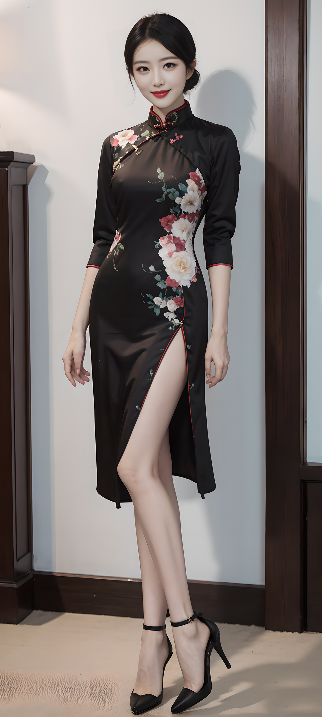 黑色旗袍美女AI绘画动漫手机壁纸免费下载