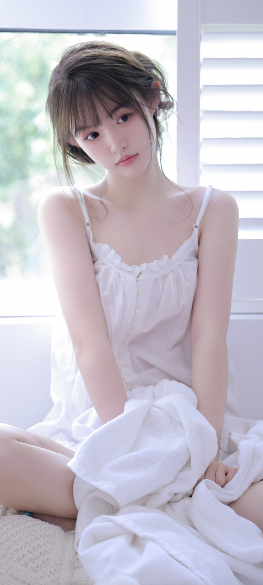 白色吊带睡裙居家美女高清免费手机壁纸下载