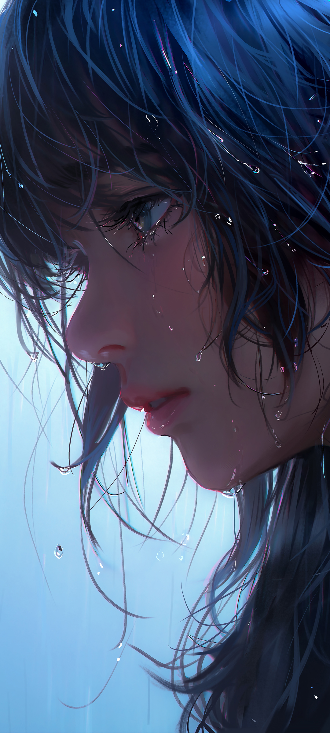 动漫长发女孩哭泣眼泪主题免费手机壁纸下载