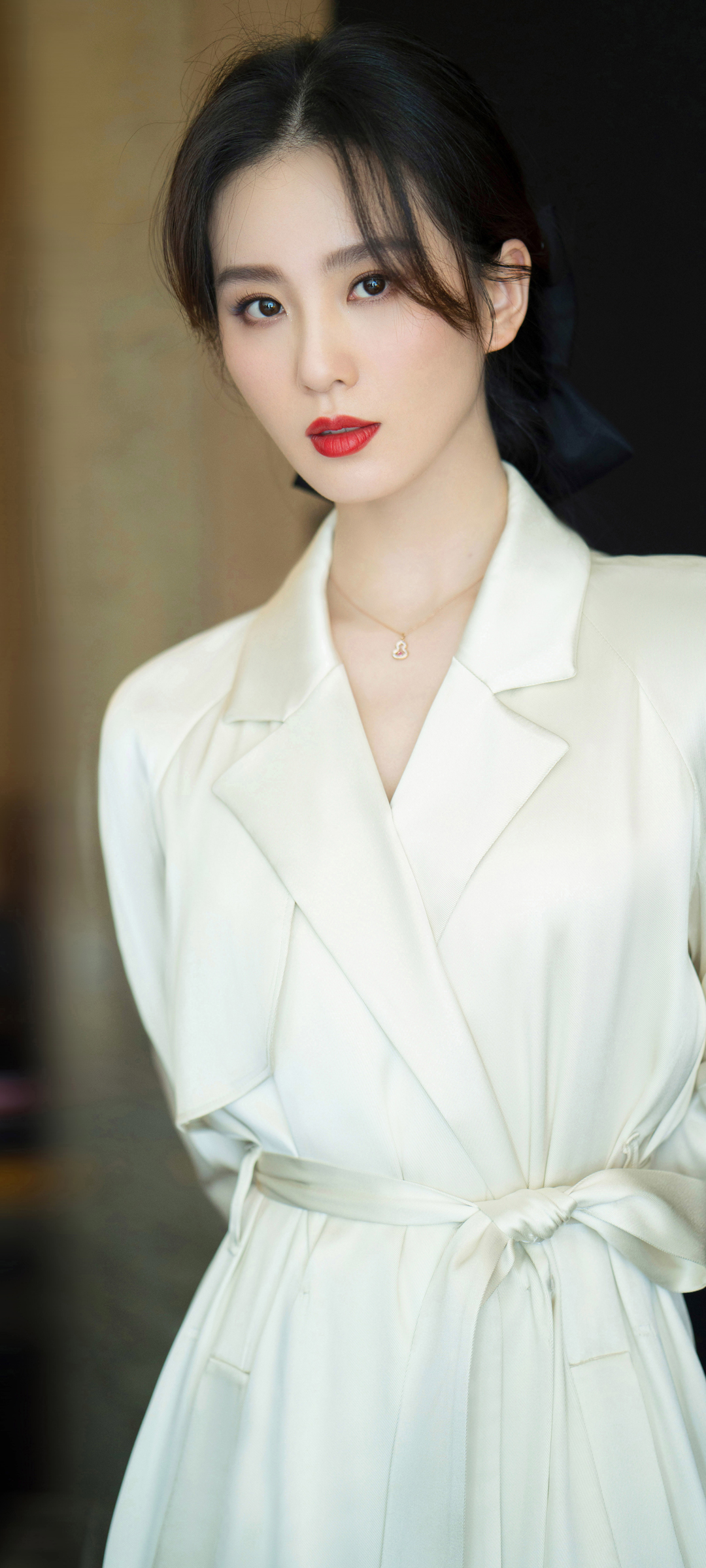 江疏影 粉色裙子 侧身照片 美腿 手机 壁纸