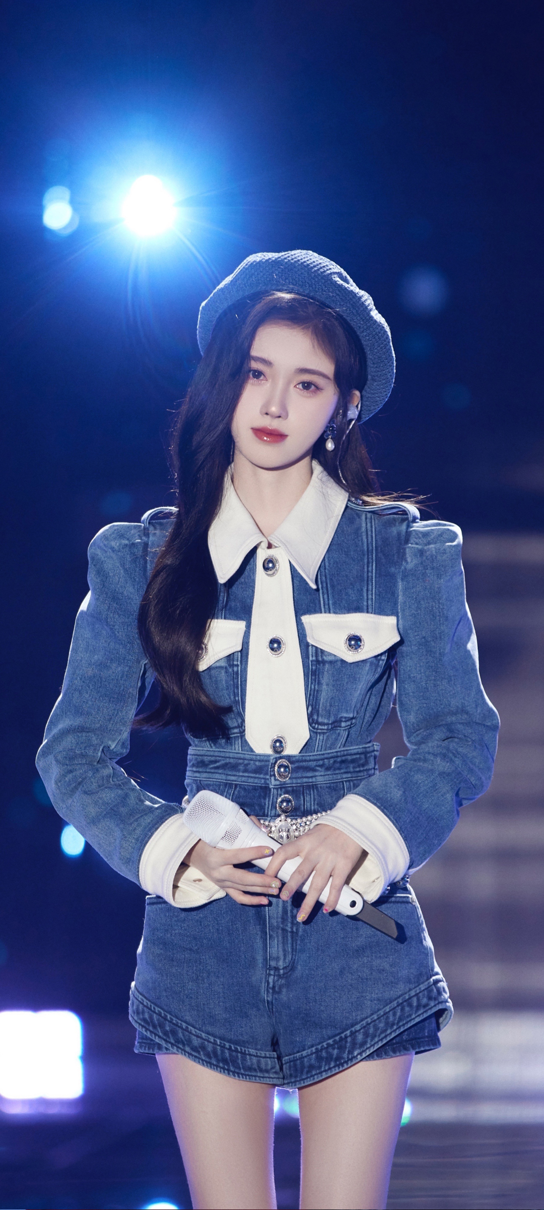 鞠婧祎 蓝色牛仔衣 美女全屏手机壁纸