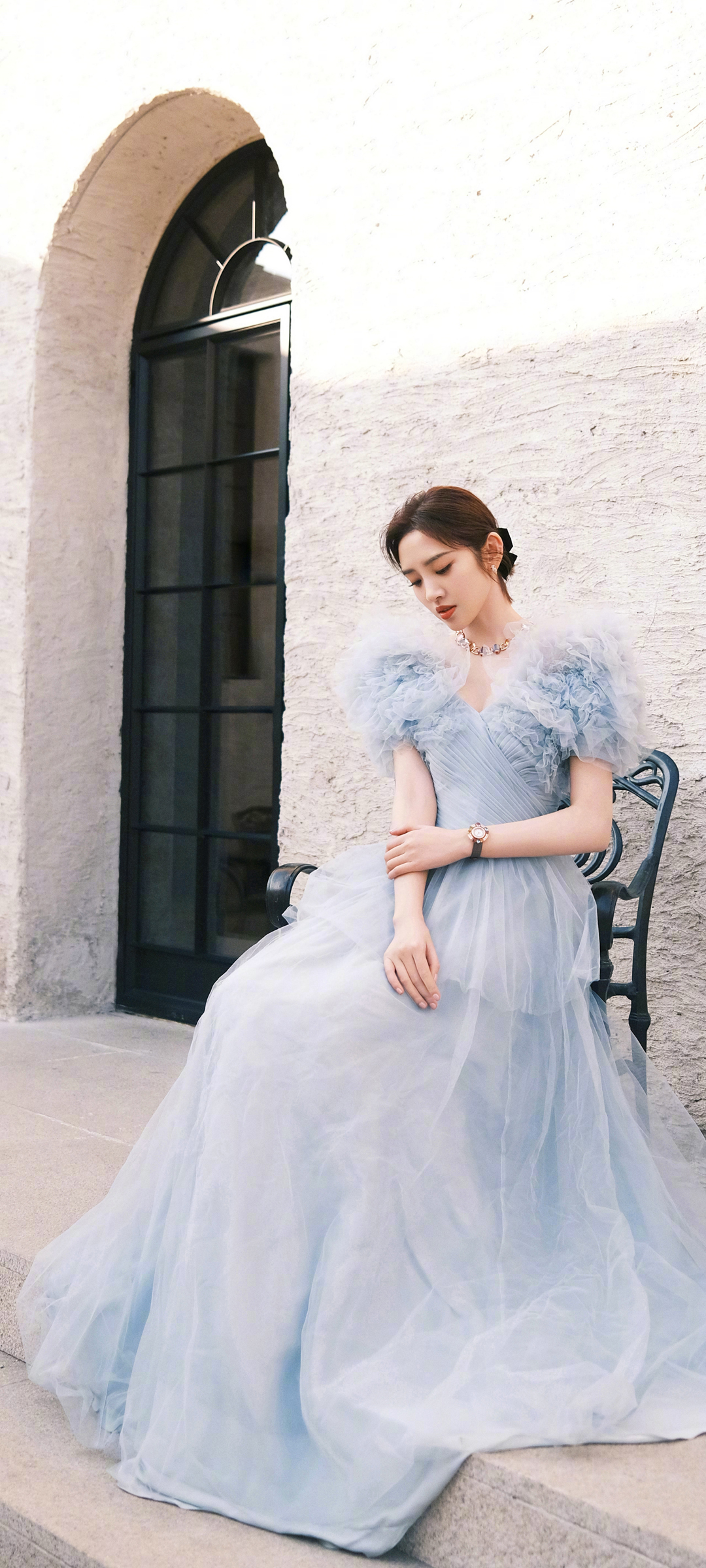 唐艺昕 蓝色婚纱长裙子手机壁纸