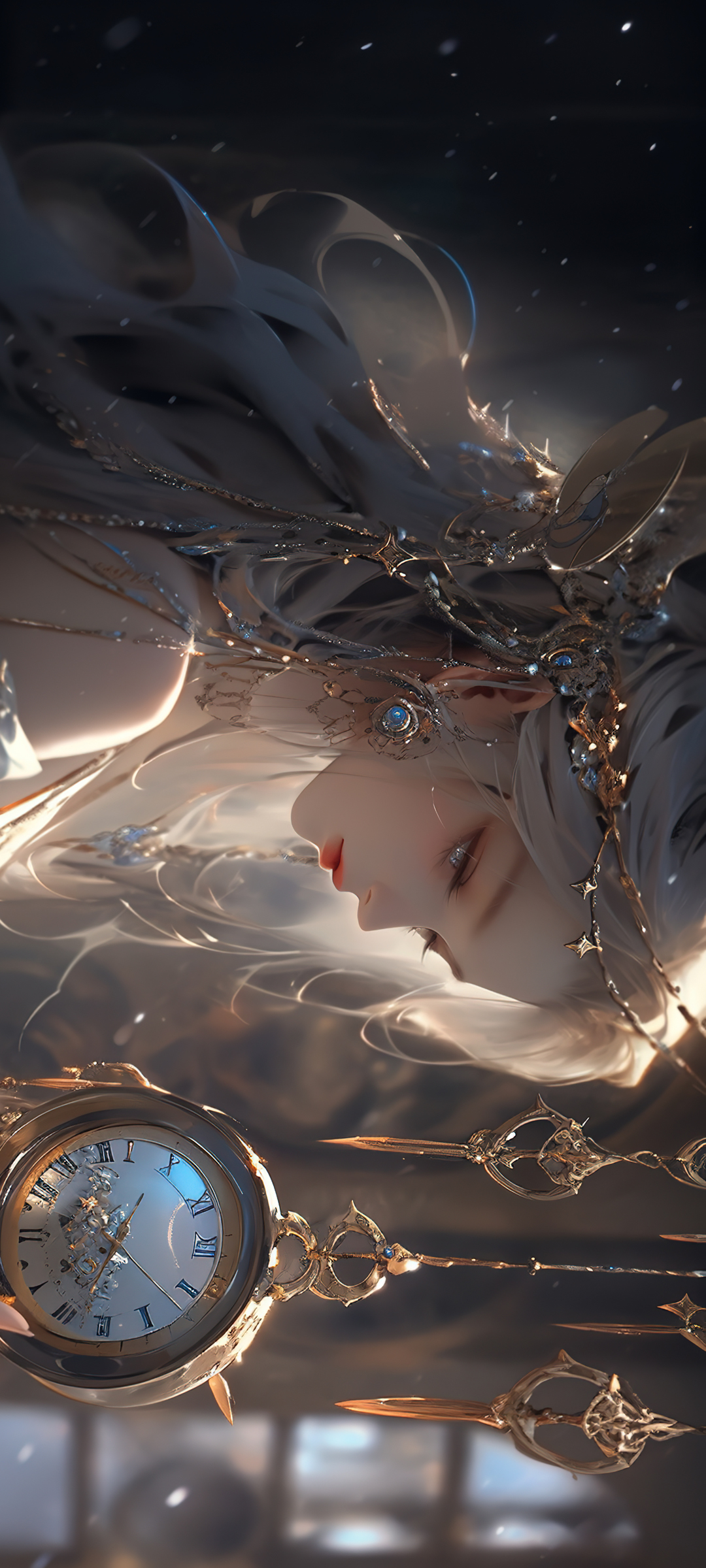动漫女神与钟表唯美风格免费手机壁纸下载