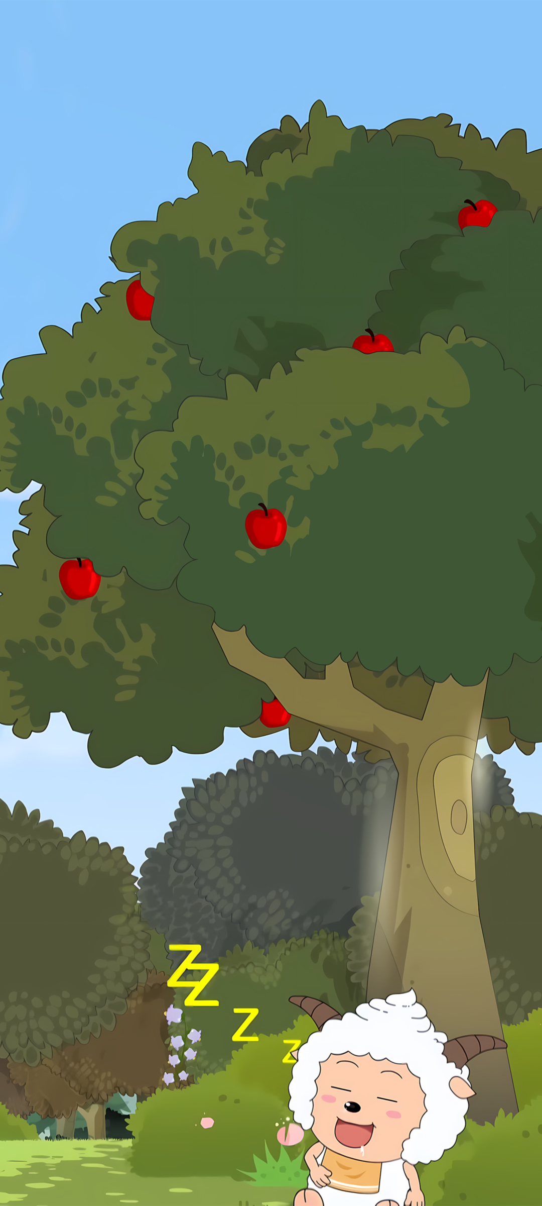 懒羊羊苹果树下睡觉动漫手机壁纸免费下载