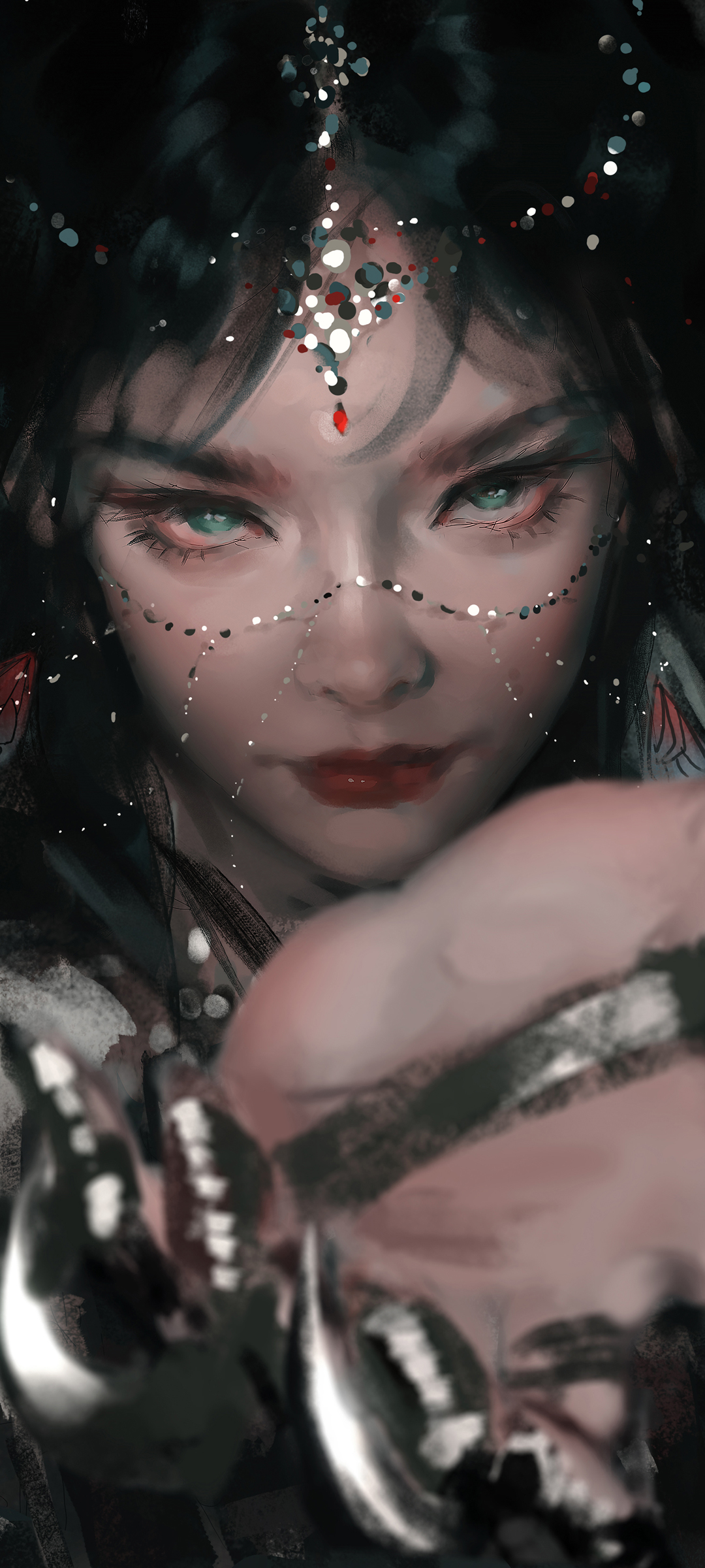 公主 绿色眼睛 头饰 唯美 鬼刀高清全屏手机壁纸