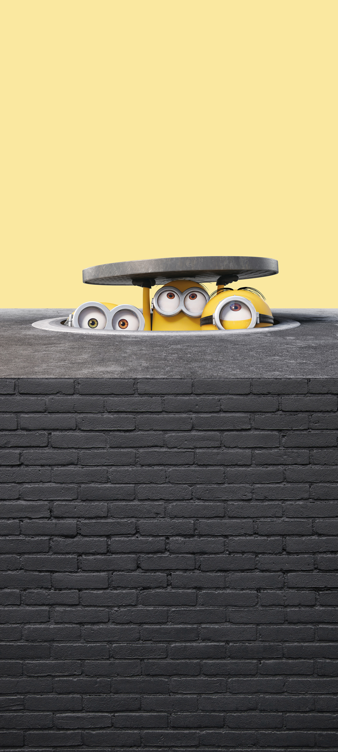 三个小黄人掀井盖动漫手机壁纸免费下载