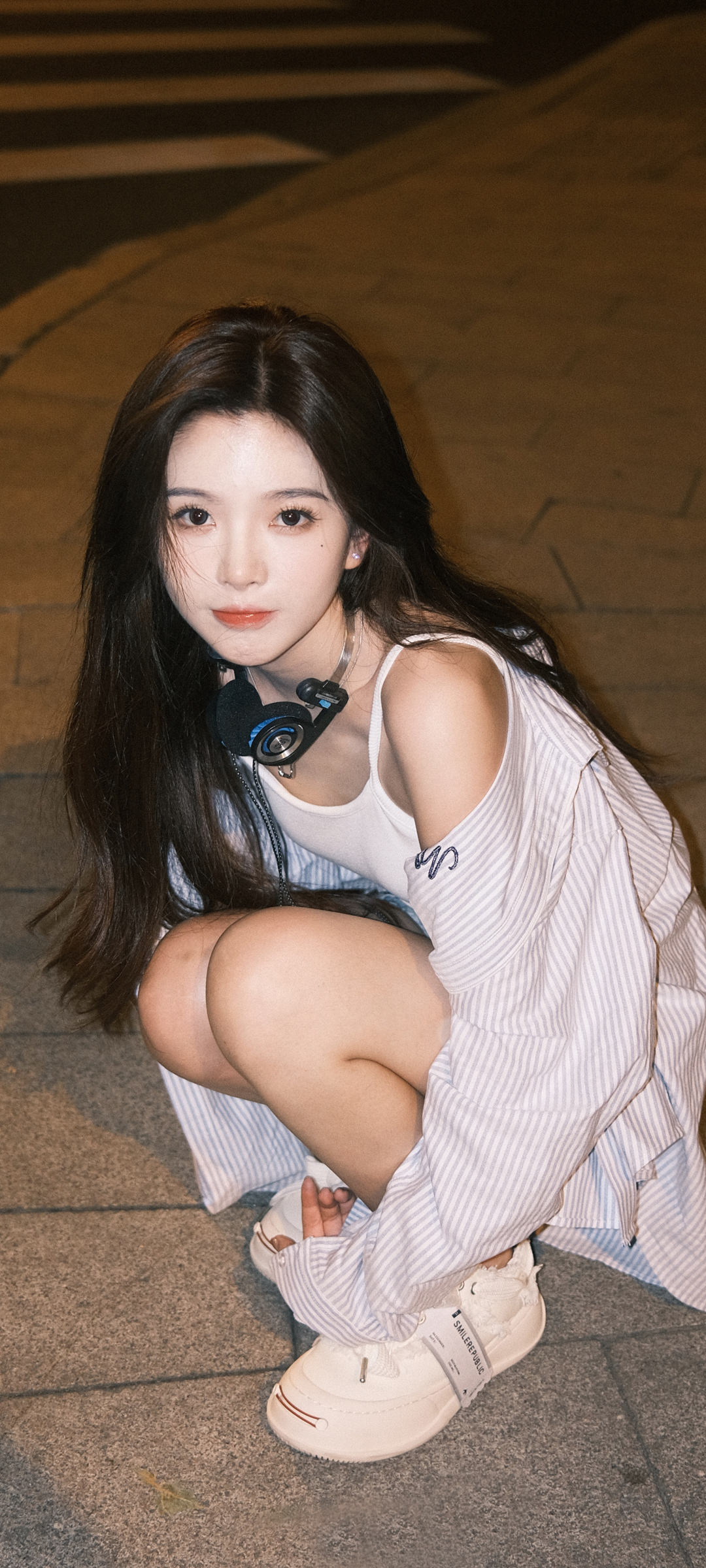 蹲地上可爱彭十六美女手机壁纸免费下载
