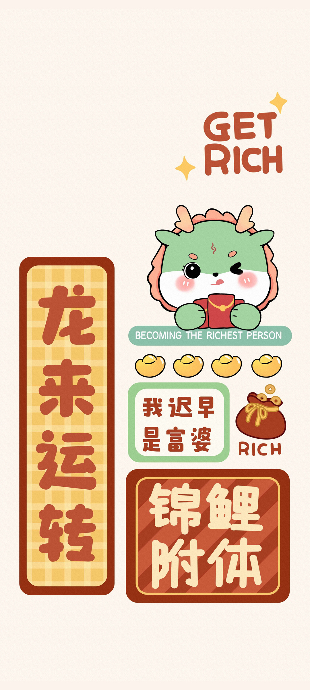 发财 好运满满 日渐富有 2024新年手机高清壁纸