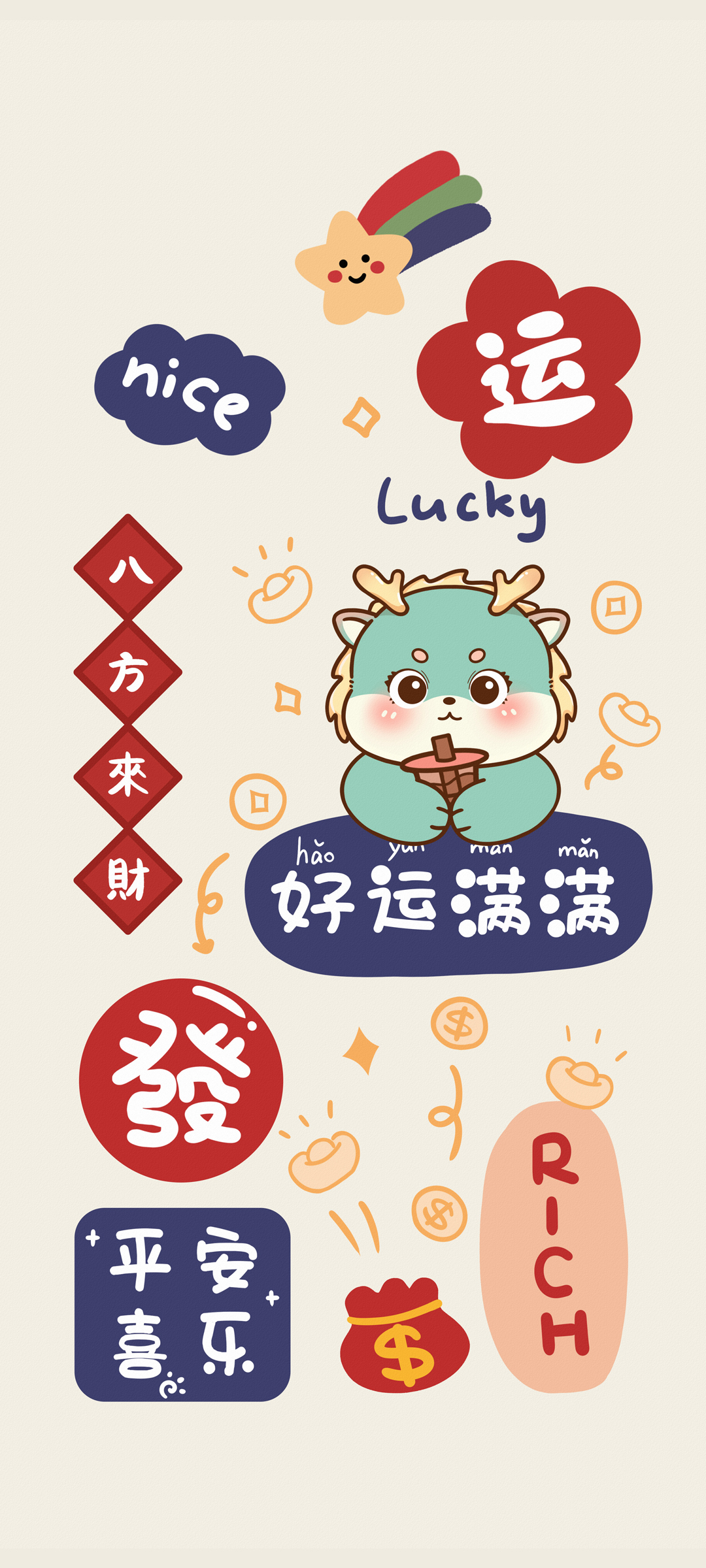 2024龙年新年手机壁纸免费下载,好运满满八方来财平安喜乐