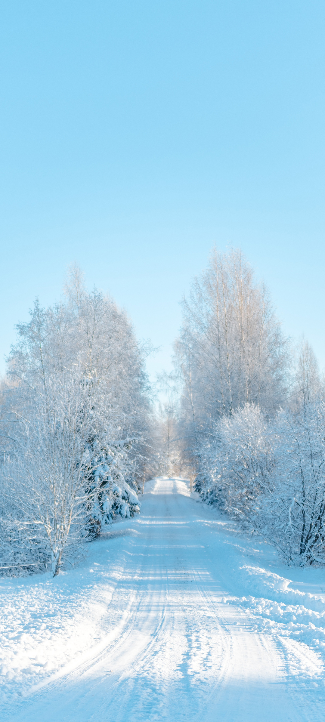 冬天雪地树与公路高清风景手机壁纸免费下载