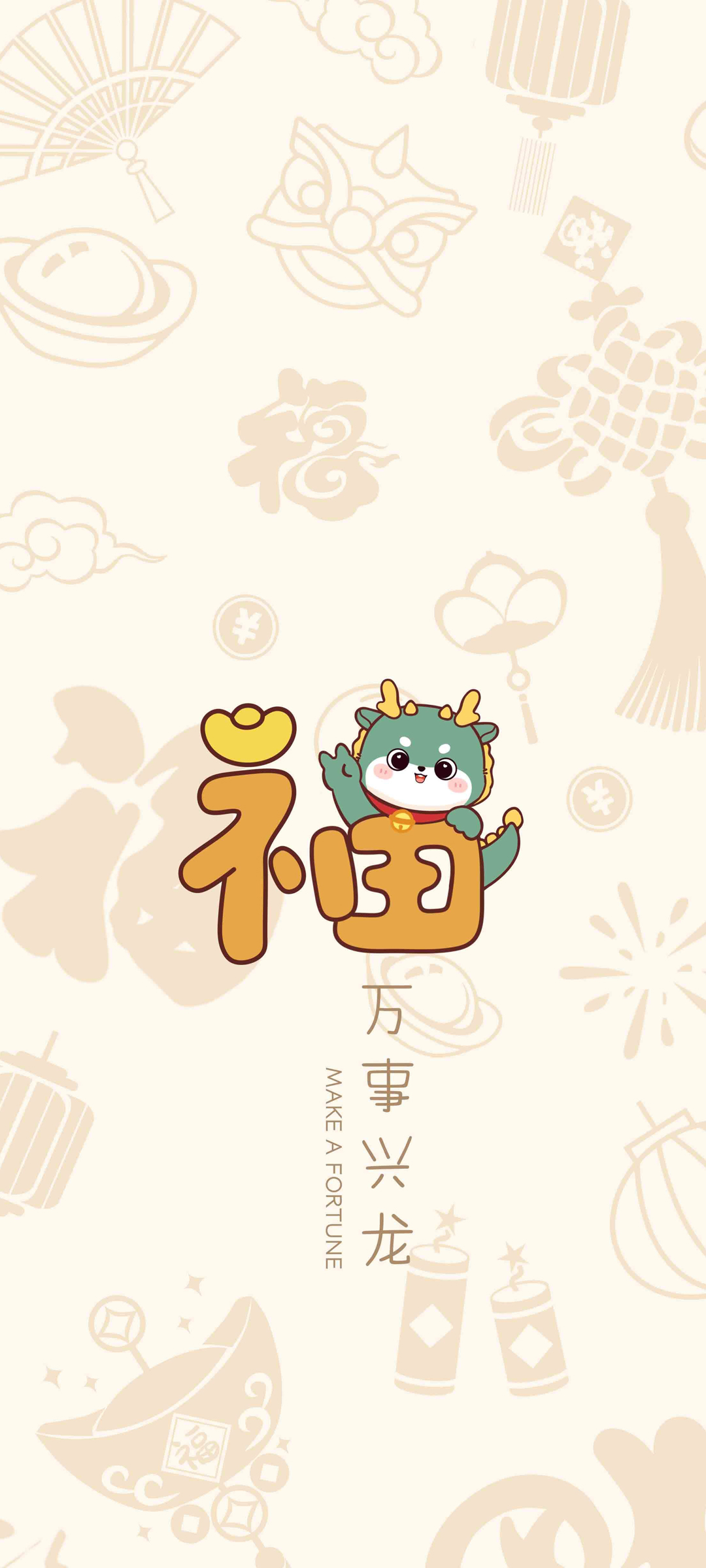 2024福龙 万事兴龙 可爱龙年新年手机背景壁纸