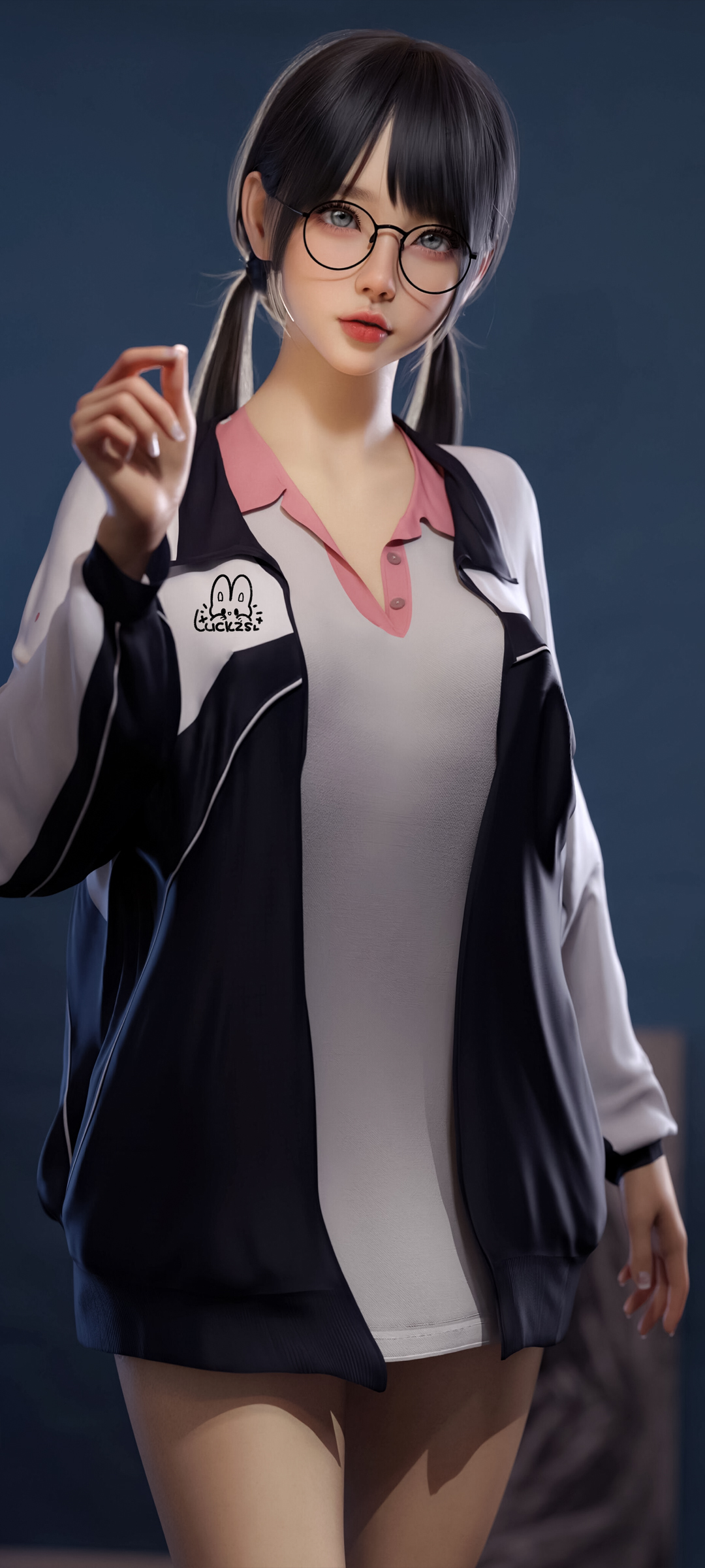 麻匪风格双马尾辫戴眼镜校服动漫美女高清手机壁纸免费下载