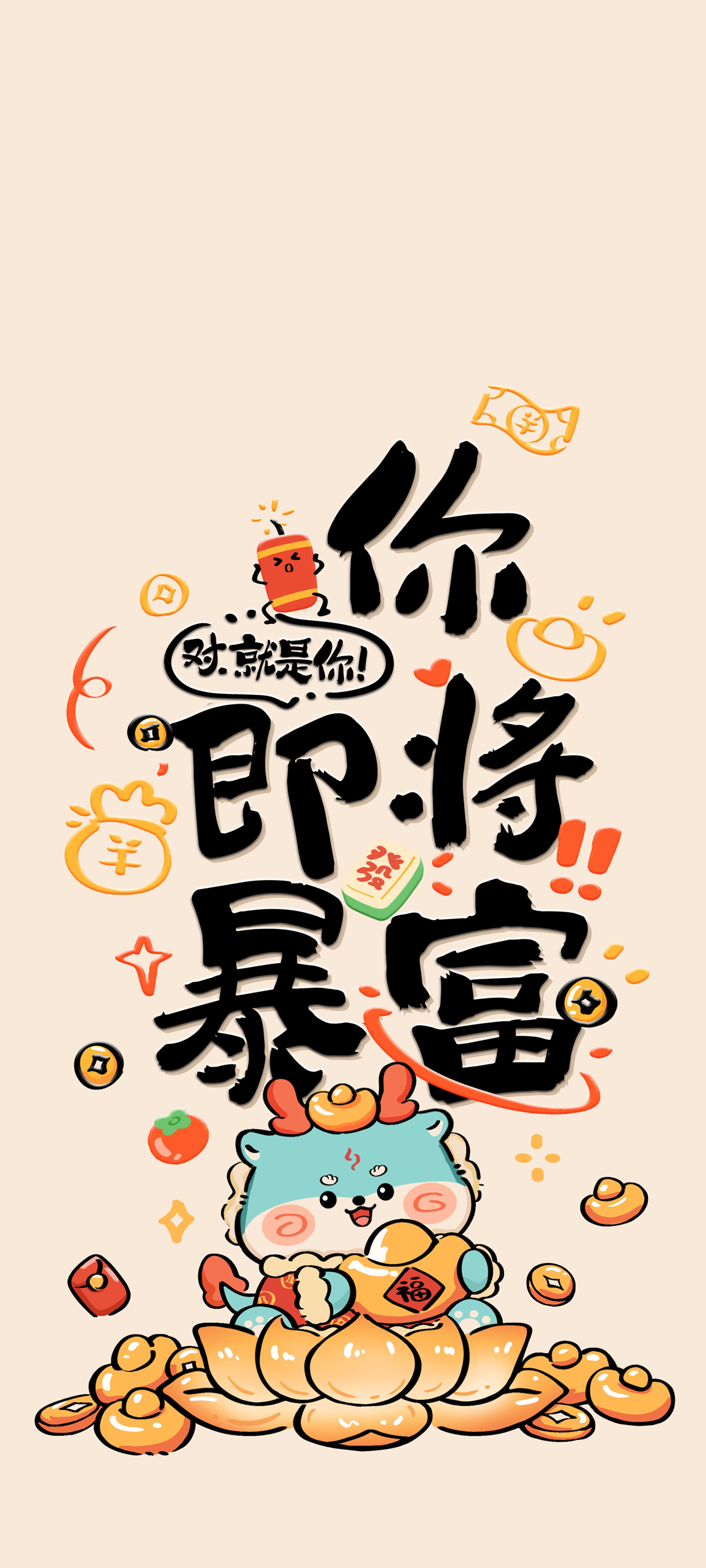 2024龙年可爱新年手机壁纸,你即将暴富免费下载