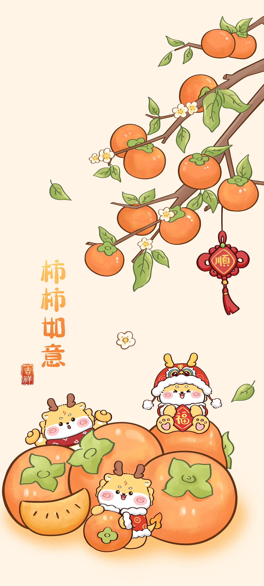 龙年 柿柿如意 可爱手机壁纸图片