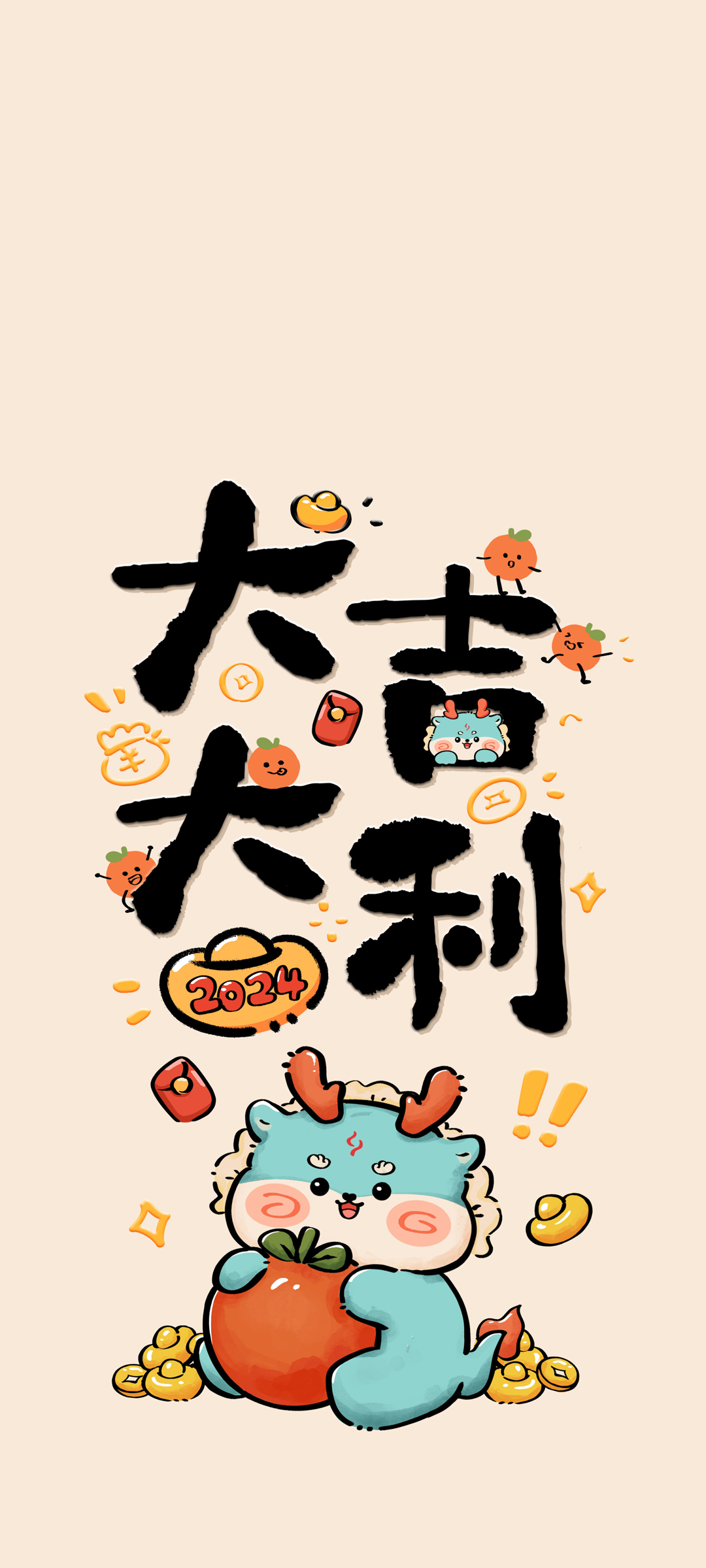 2024新年 好运满满 八方来财 平安喜欢 龙年手机背景壁纸