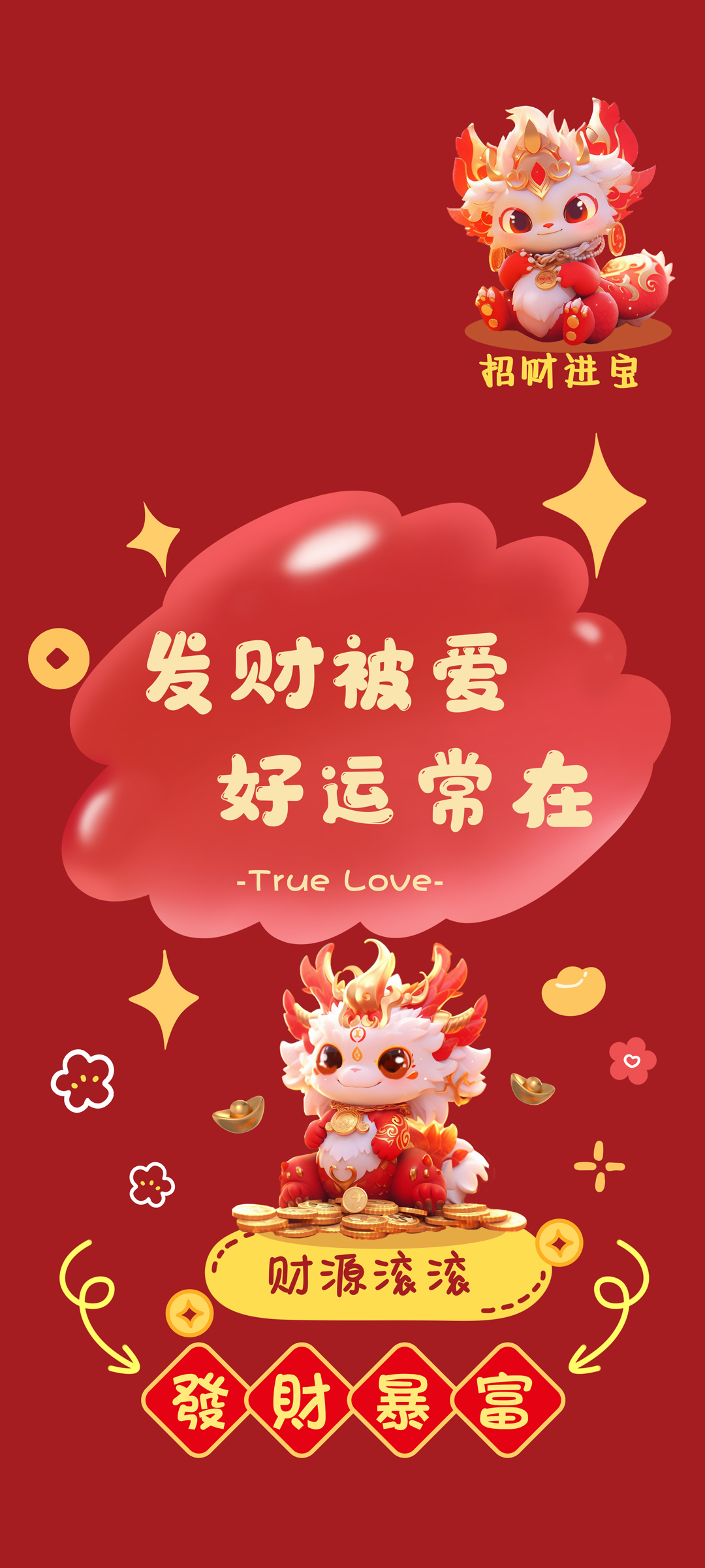 2024暴富 财运兴龙 好柿发生 好运满满 八方来财手机壁纸