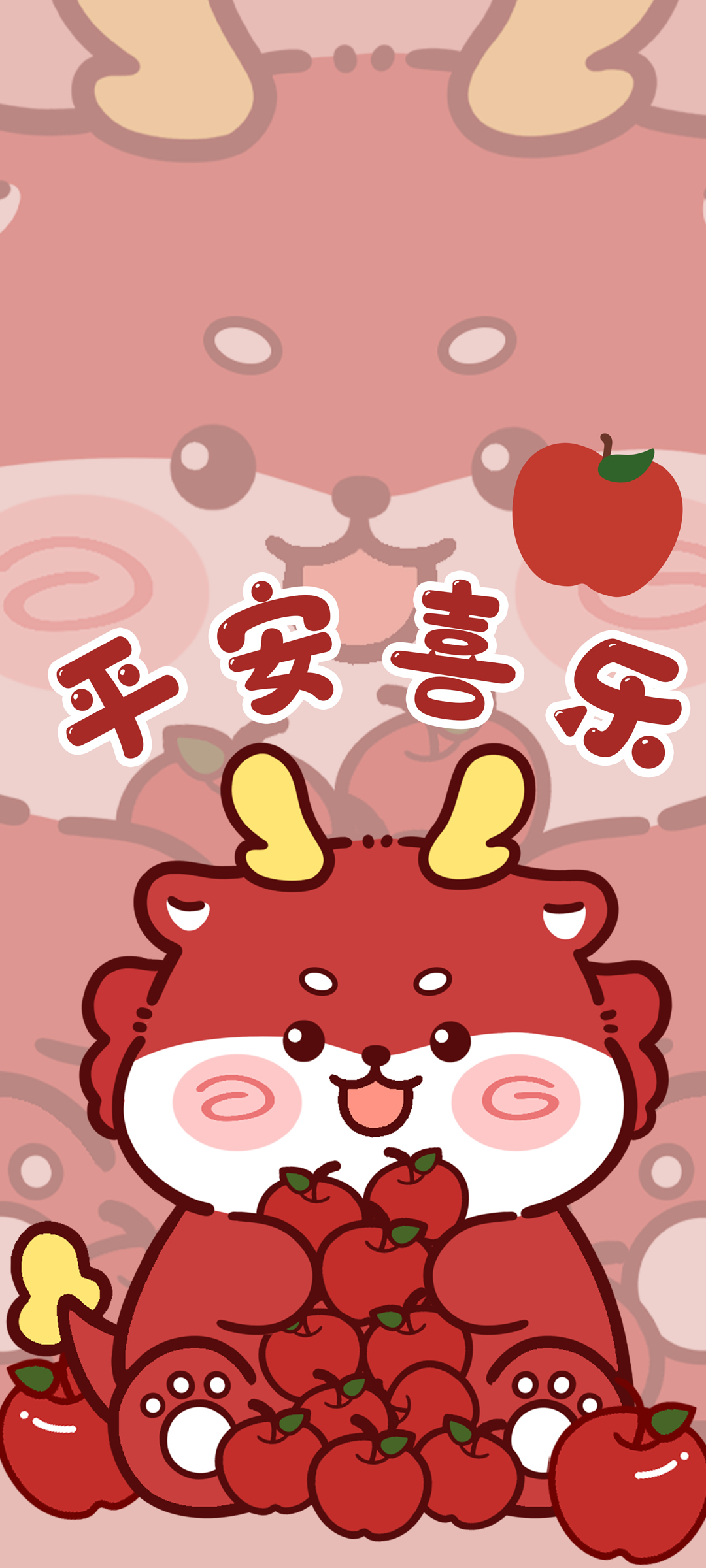 2024龙年平安喜乐可爱新年免费手机壁纸下载