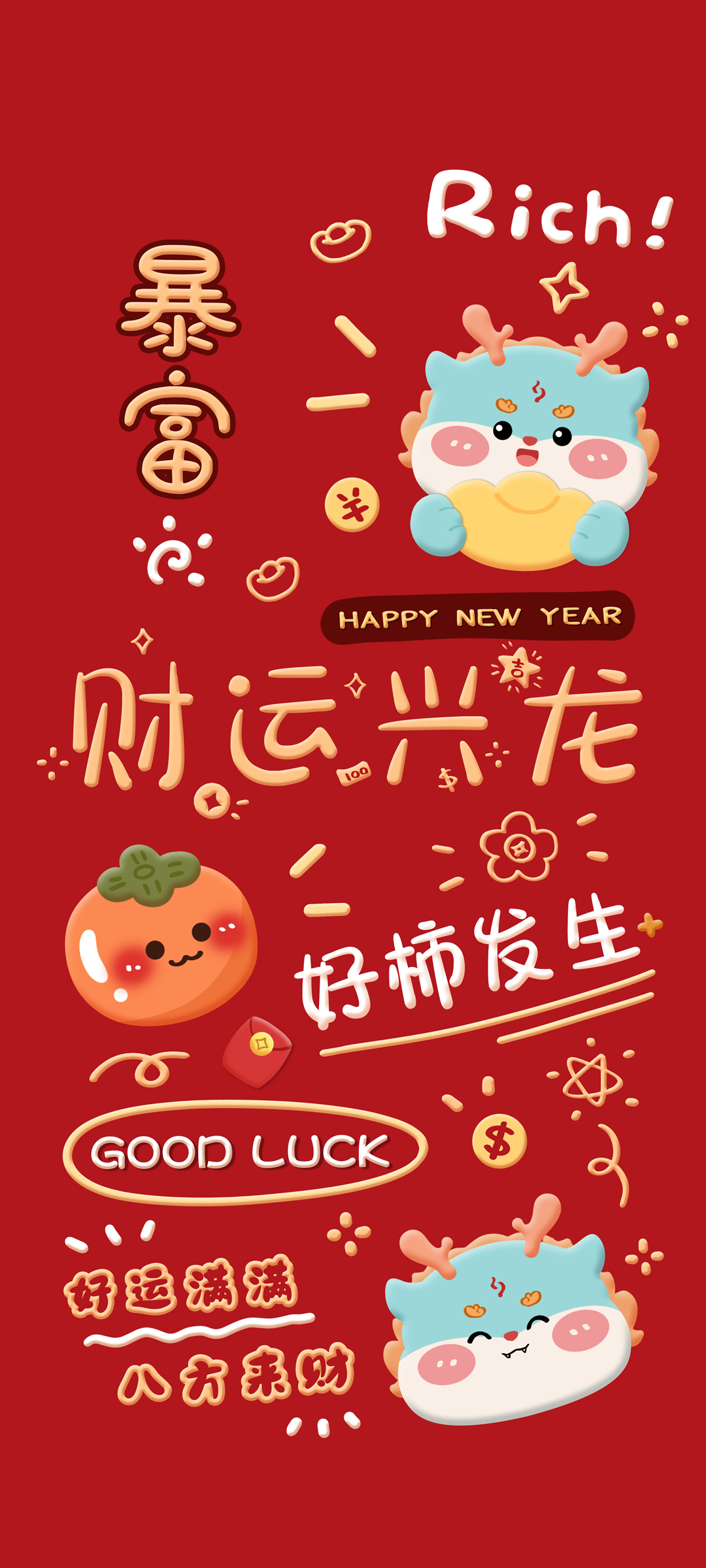 2024暴富 财运兴龙 好柿发生 好运满满 八方来财手机壁纸