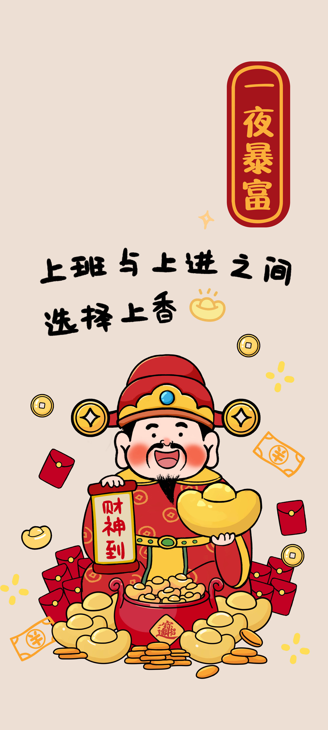 2024新年一夜暴富财神爷手机壁纸免费下载