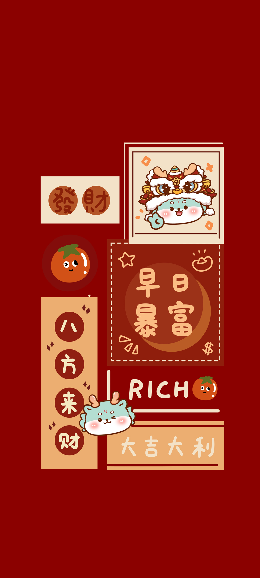 龙年发财 八方来财 早日暴富 大吉大利手机壁纸