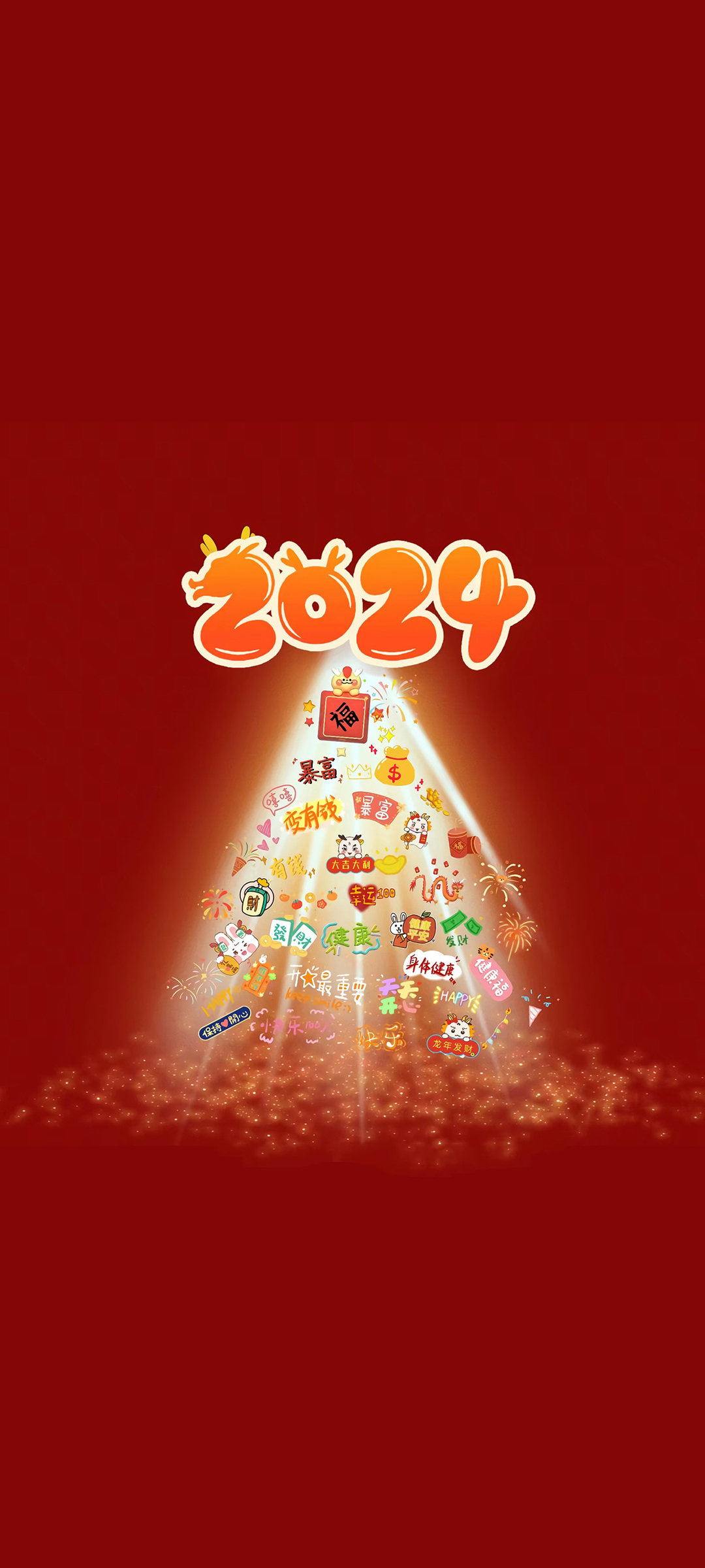 2024新年快乐 红色2024个性字体手机高清壁纸