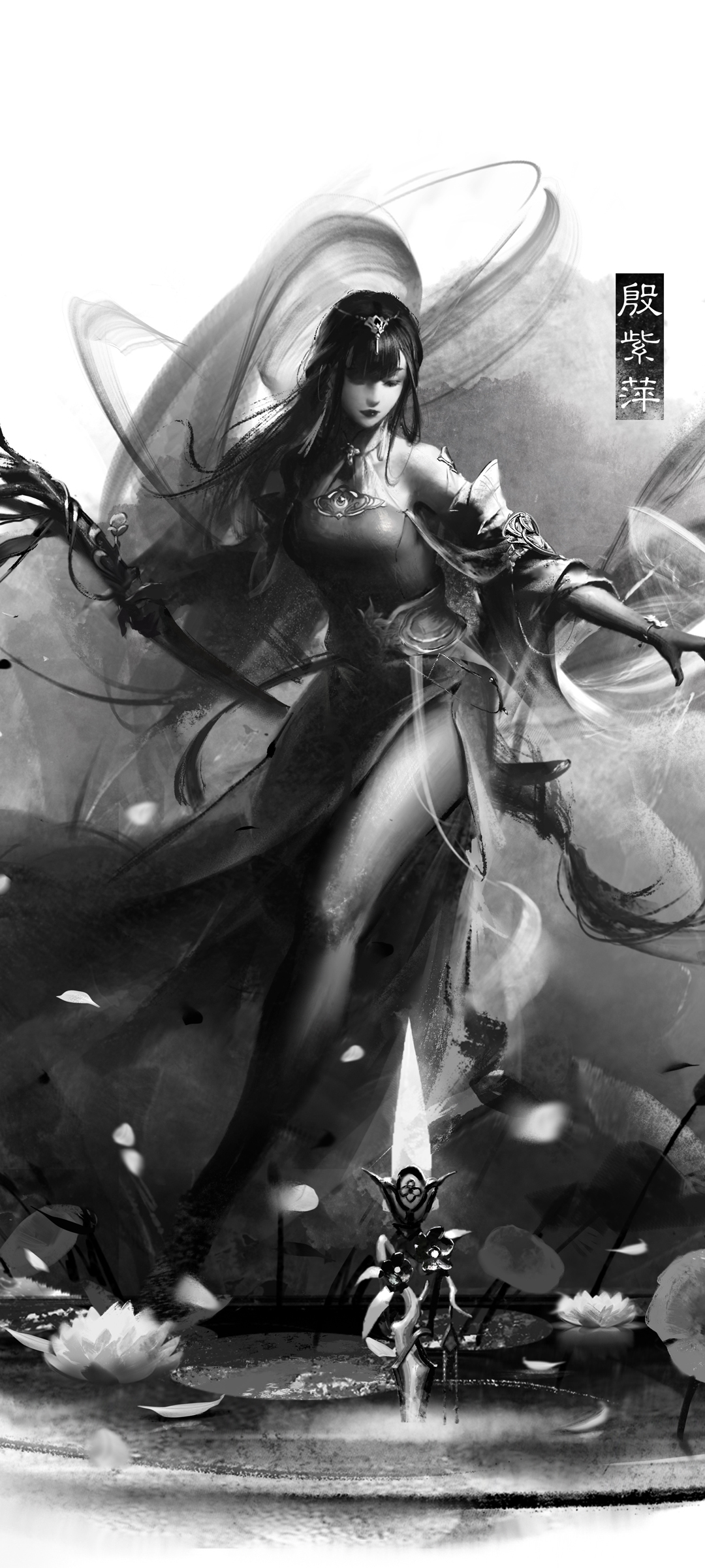永劫无间殷紫萍黑白水墨风游戏免费手机壁纸下载