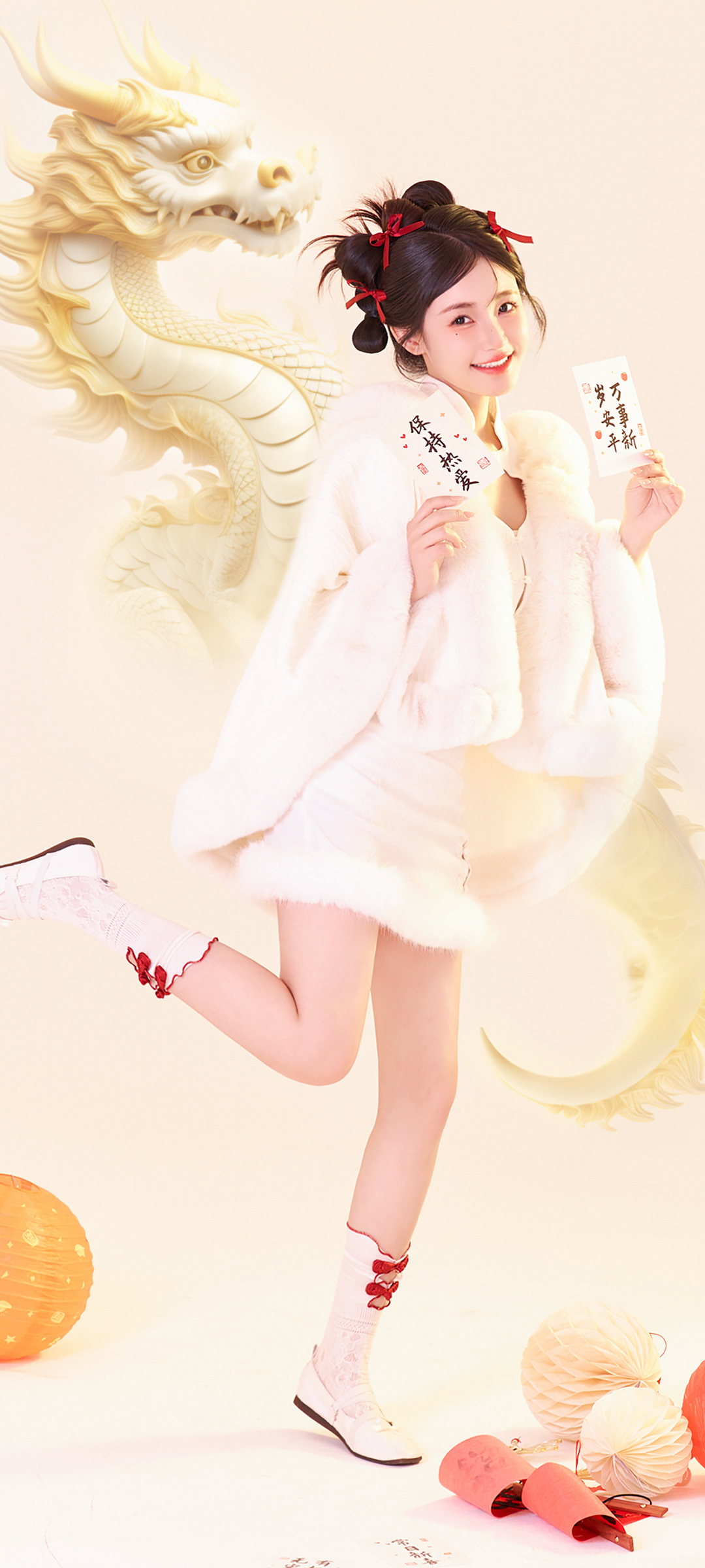 新年 红色裙子 养眼美女鞠婧祎手机壁纸