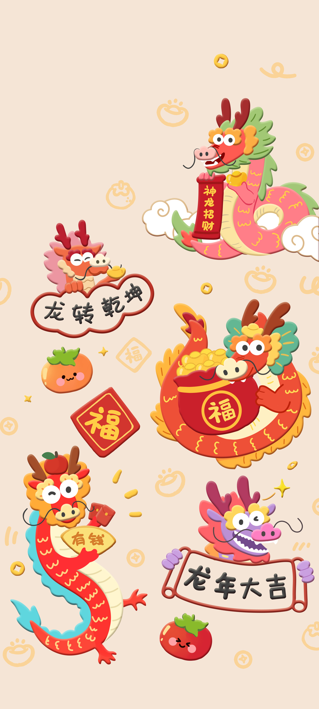 2024龙年 公主请发财 好运 开心顺利 平安手机壁纸图片
