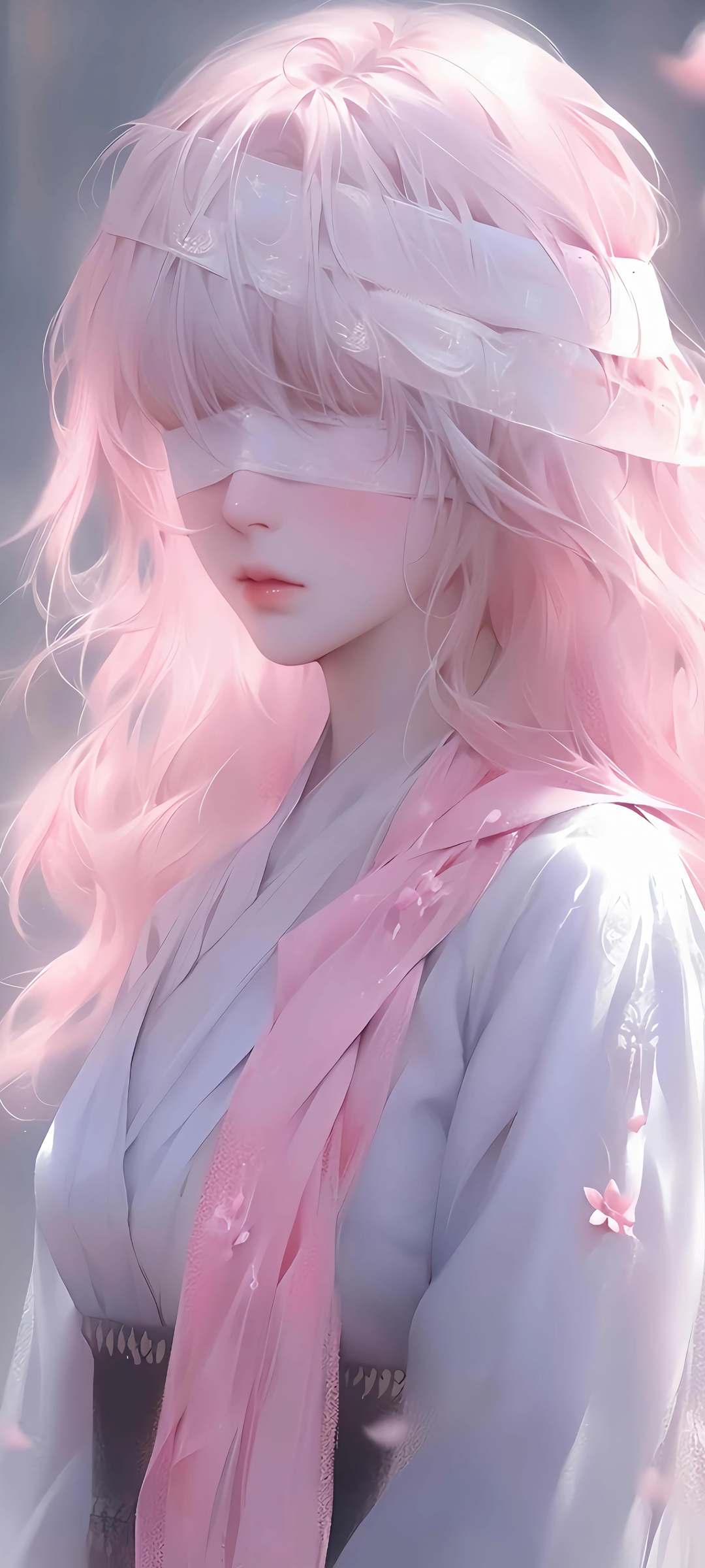 唯美粉色长发蒙眼少女动漫手机高清壁纸免费下载